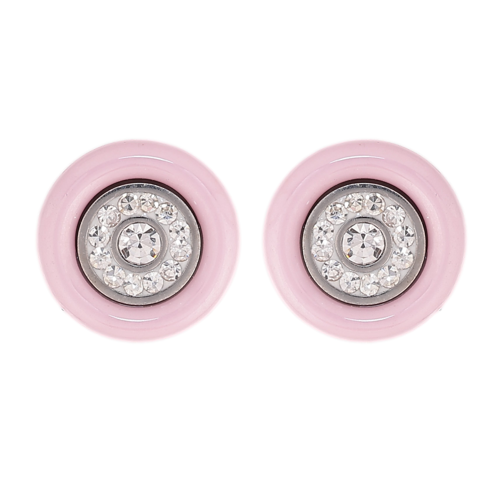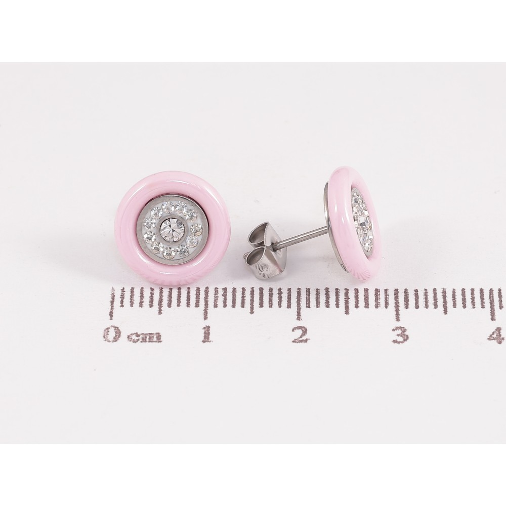 Серьги Xuping TTM Stainless Steel цвет Родий пусеты "Колечки с кристаллами и розовой керамикой"