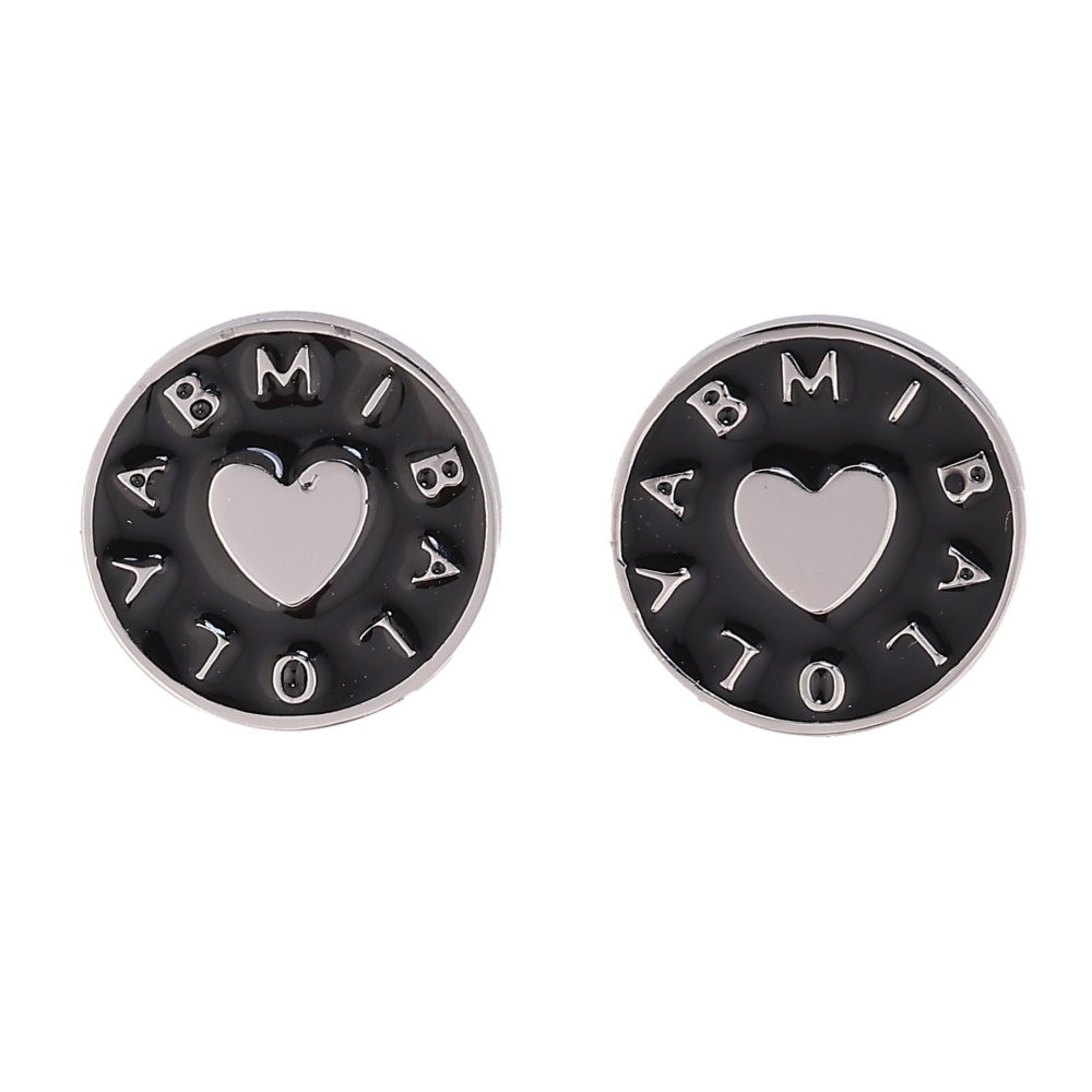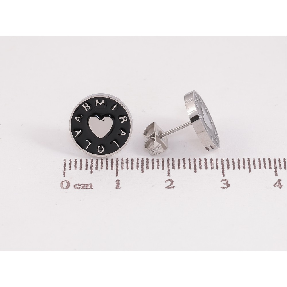 Серьги Xuping TTM Stainless Steel цвет Родий пусеты "Колечки с узором сердечки и черной эмалью"