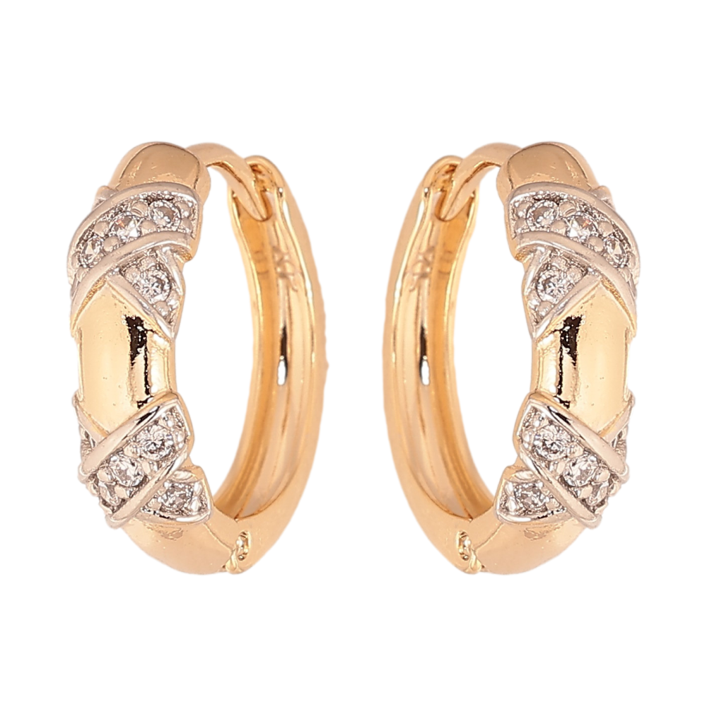 Серьги Xuping цвет Позолота 18К+Родий колечки "Узор с кристаллами"
