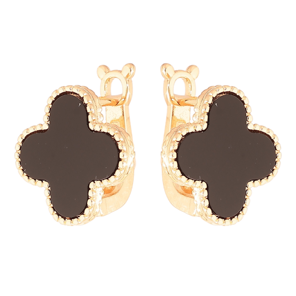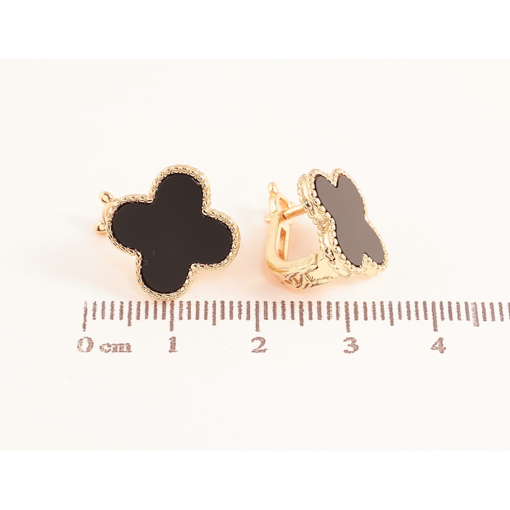 Сережки Нержавіюча сталь англійський замок "Конюшина з чорними вставками"
