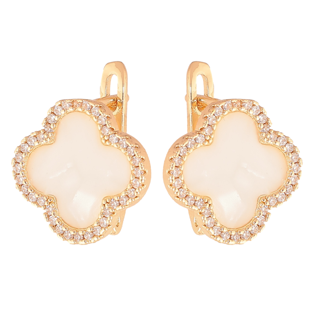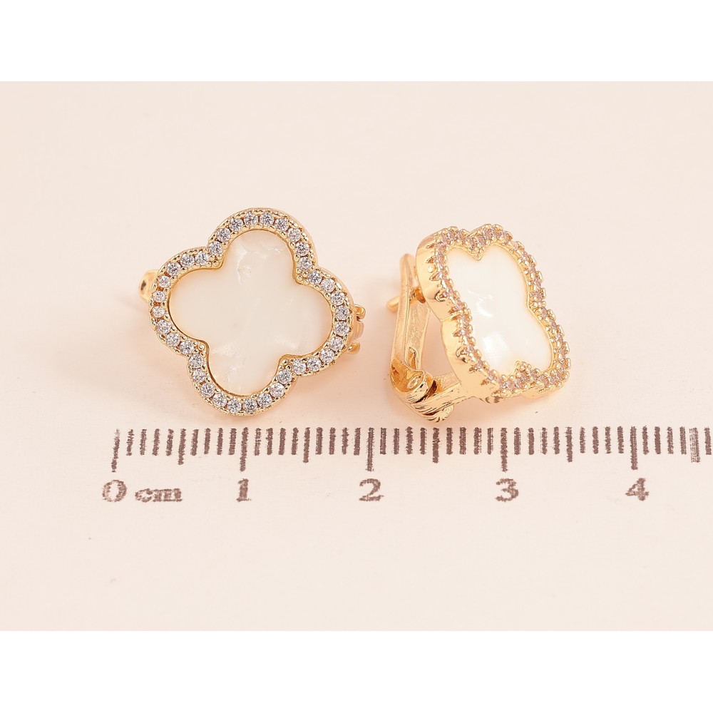 Сережки Нержавіюча сталь англійський замок "Конюшина з перламутровими вставками та кристалами"