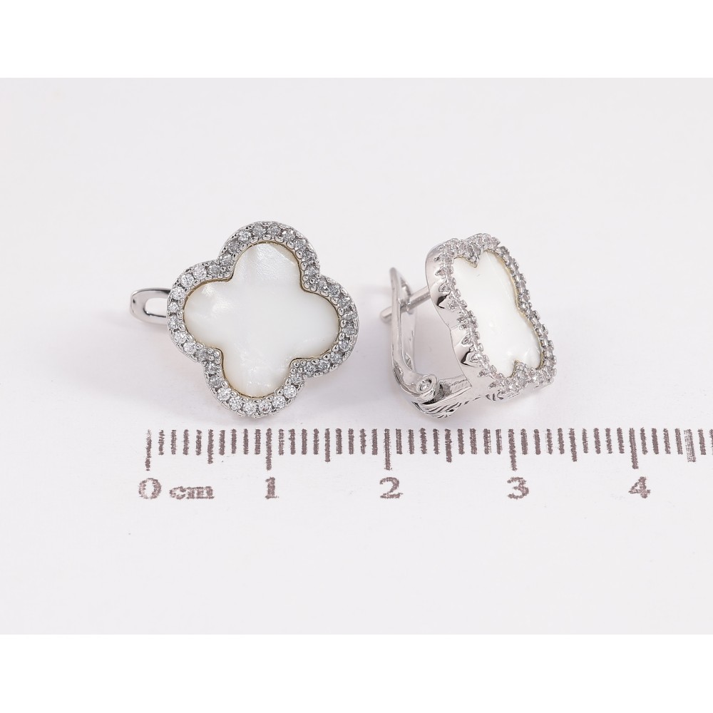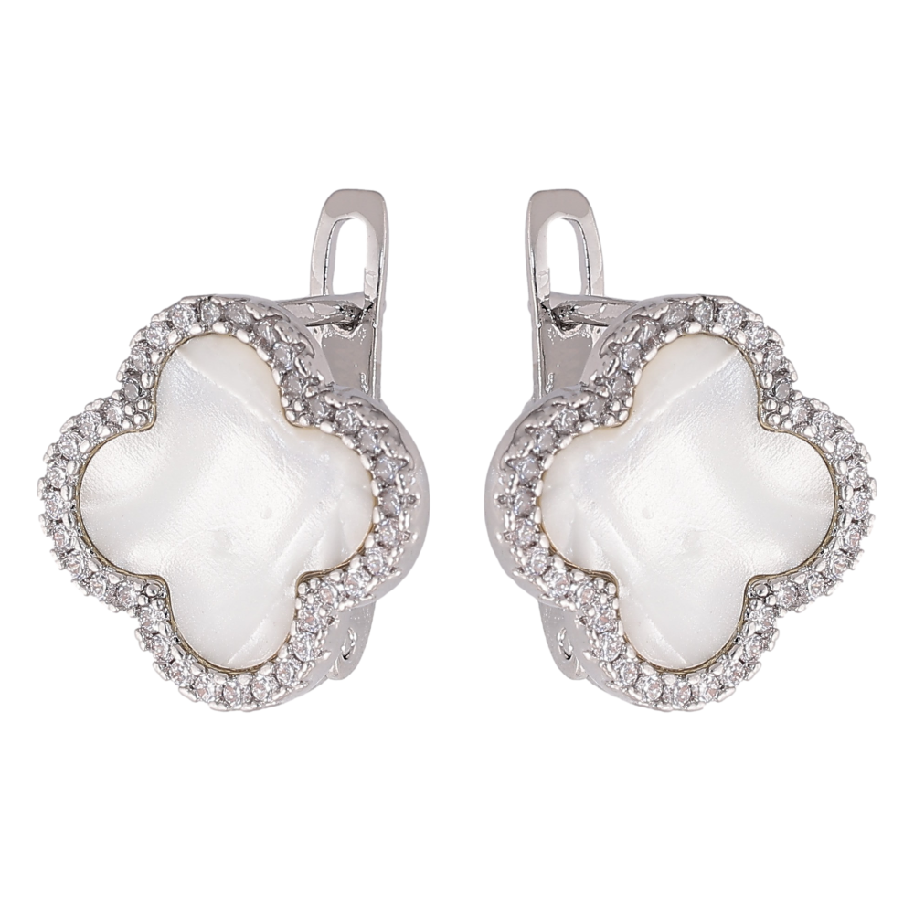 Сережки Нержавіюча сталь англійський замок "Конюшина з перламутровими вставками та кристалами"