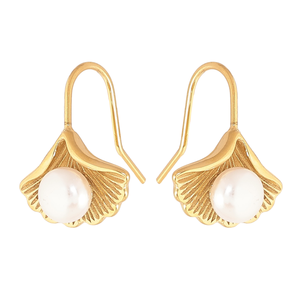 Сережки Нержавіюча сталь французький замок ""Листочки з перлинами"