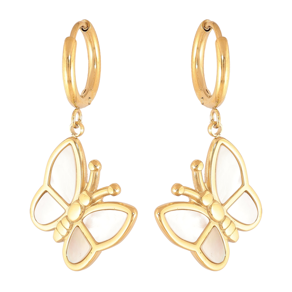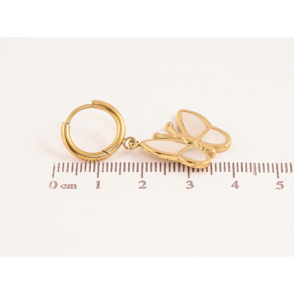 Сережки Нержавіюча сталь підвіски на колечках "Метелики з перламутровими вставками"