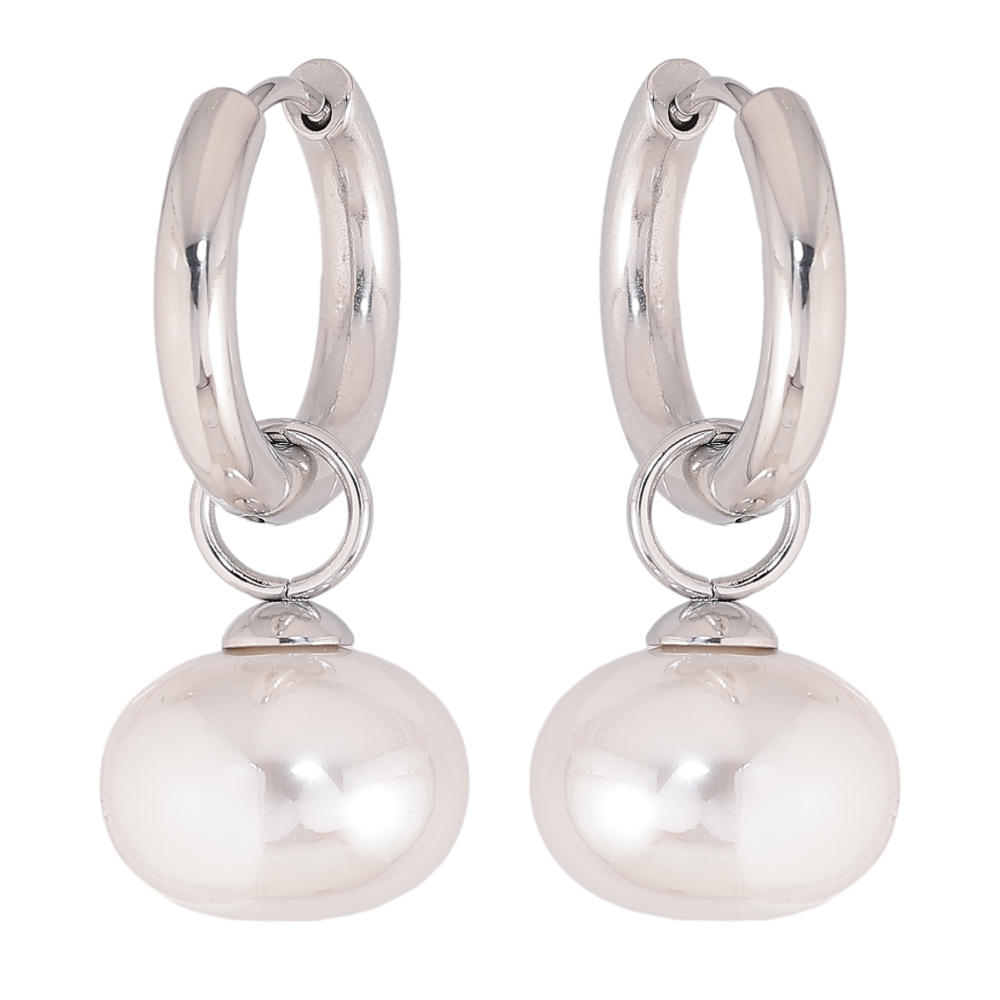 Сережки Нержавіюча сталь підвіски на колечках "Перлини" 2 в 1, ø 14мм