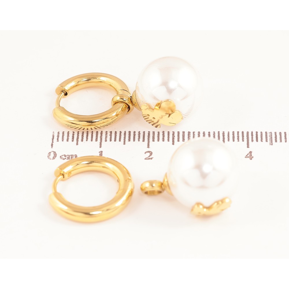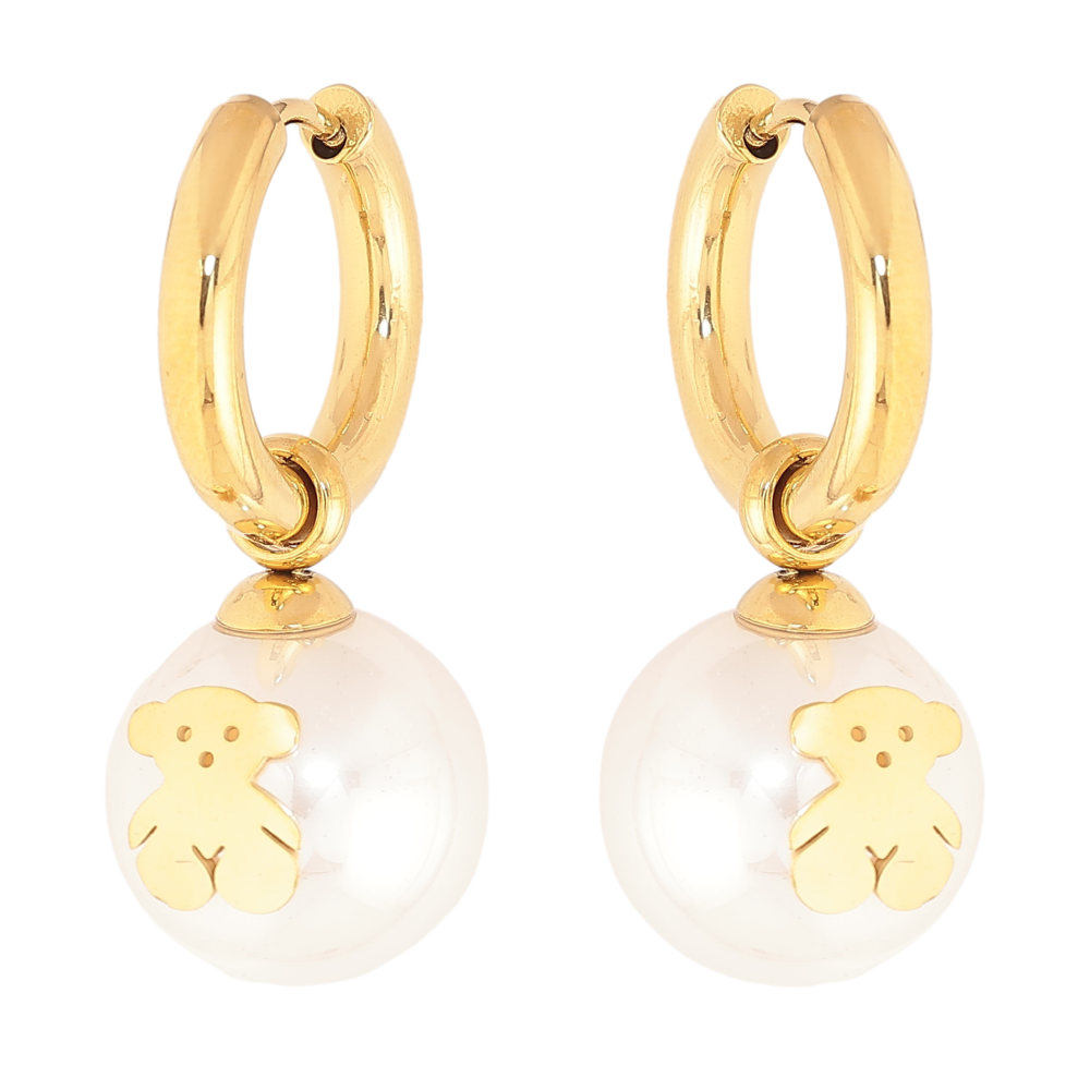 Сережки Нержавіюча сталь підвіски на колечках "Перлини з ведмедиками" 2 в 1, ø 14мм