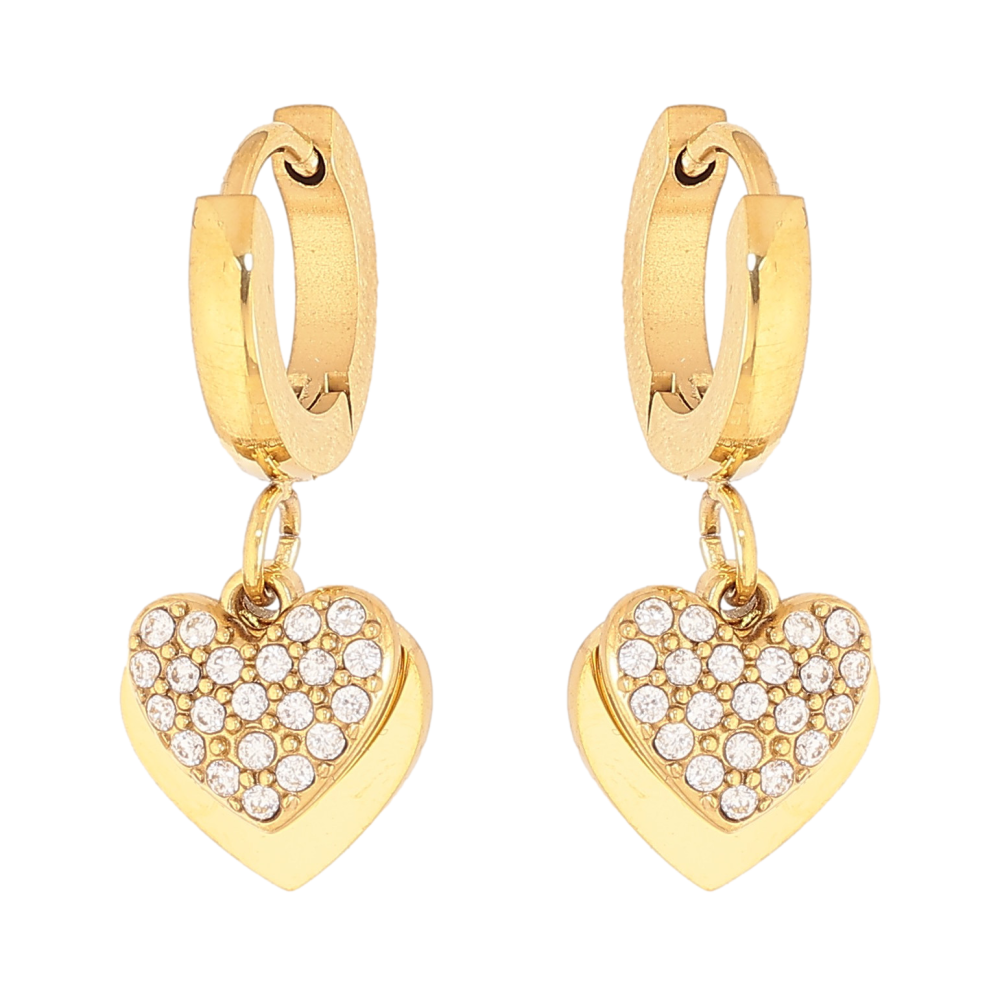 Сережки Нержавіюча сталь підвіски на колечках "Сердечки з кристалами"