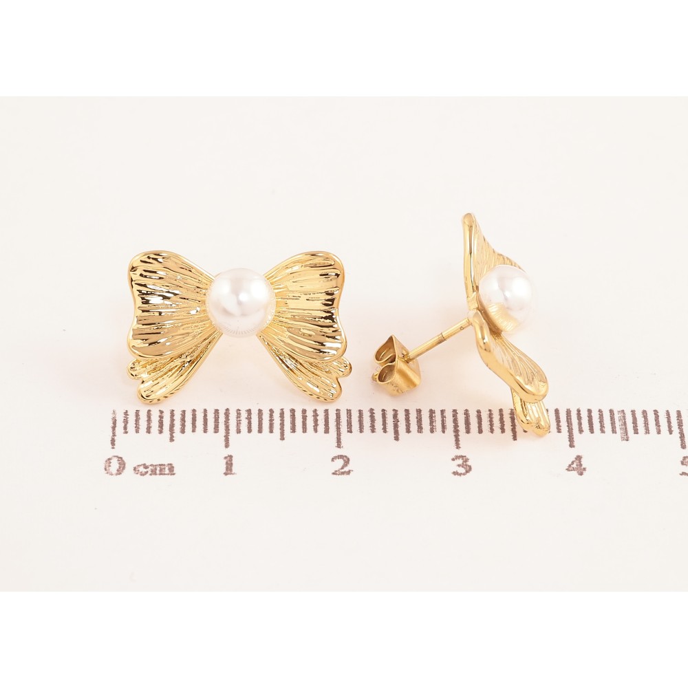 NEW Сережки Нержавіюча сталь пусети "Банти з перлинами" фото №2