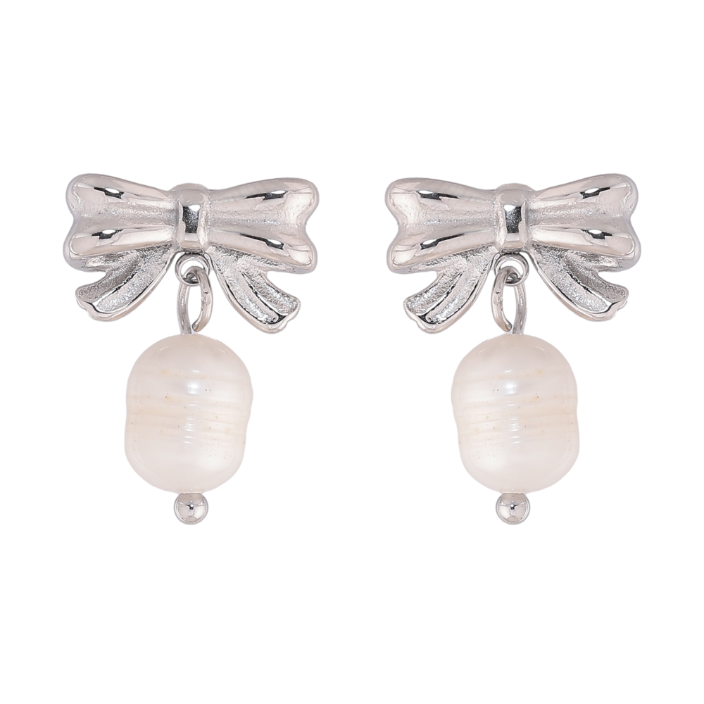 Сережки Нержавіюча сталь пусети "Банти з перлинами"