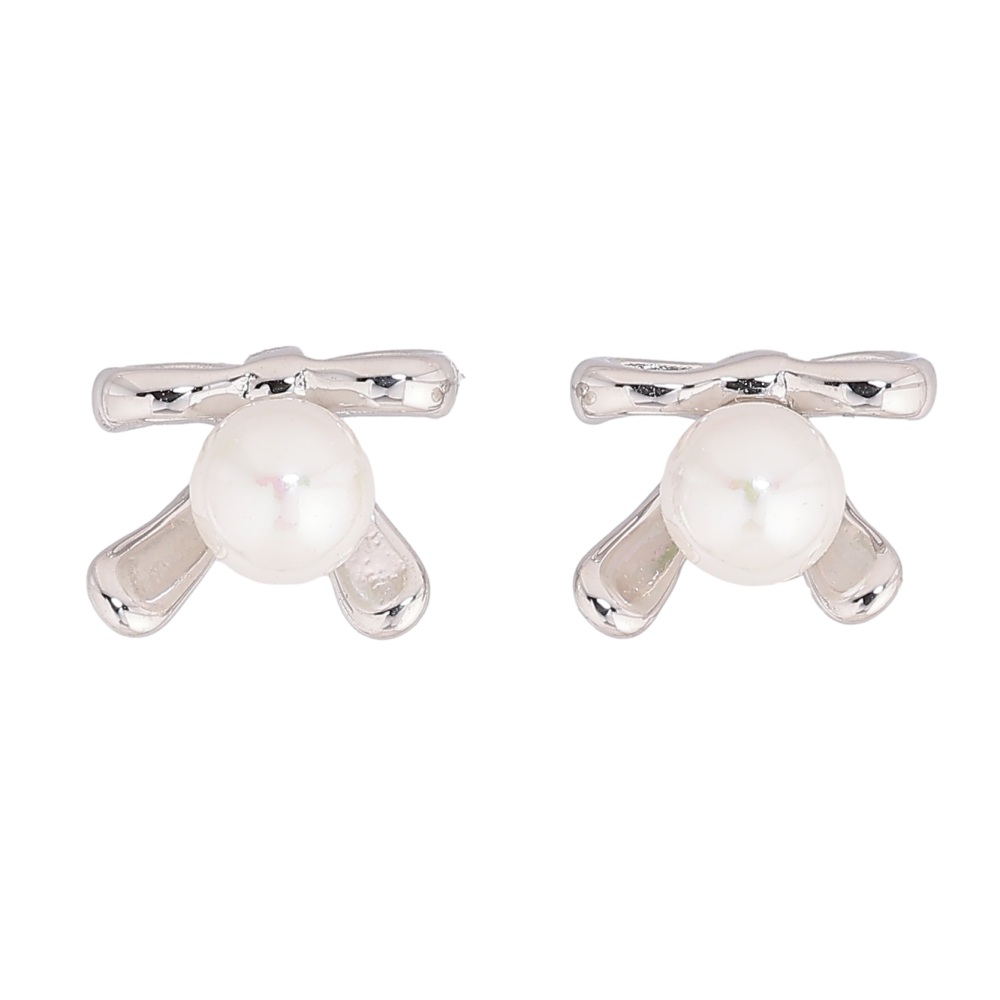 Сережки Нержавіюча сталь пусети "Банти з перлинами"
