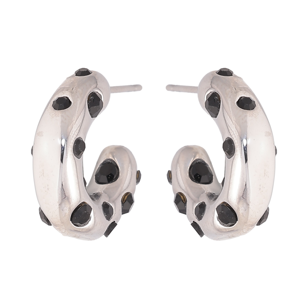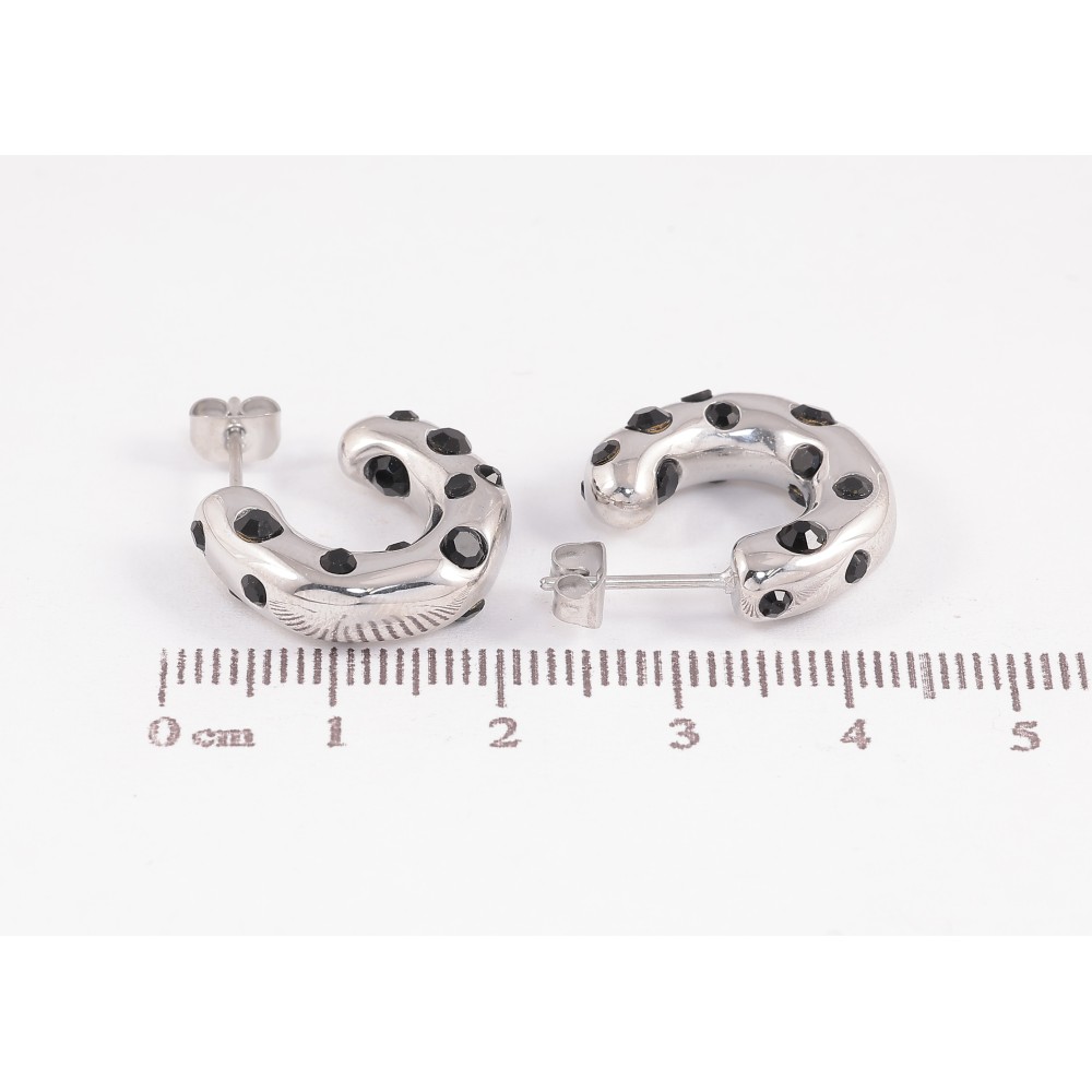 Сережки Нержавіюча сталь пусети "Дуги із чорними кристалами"