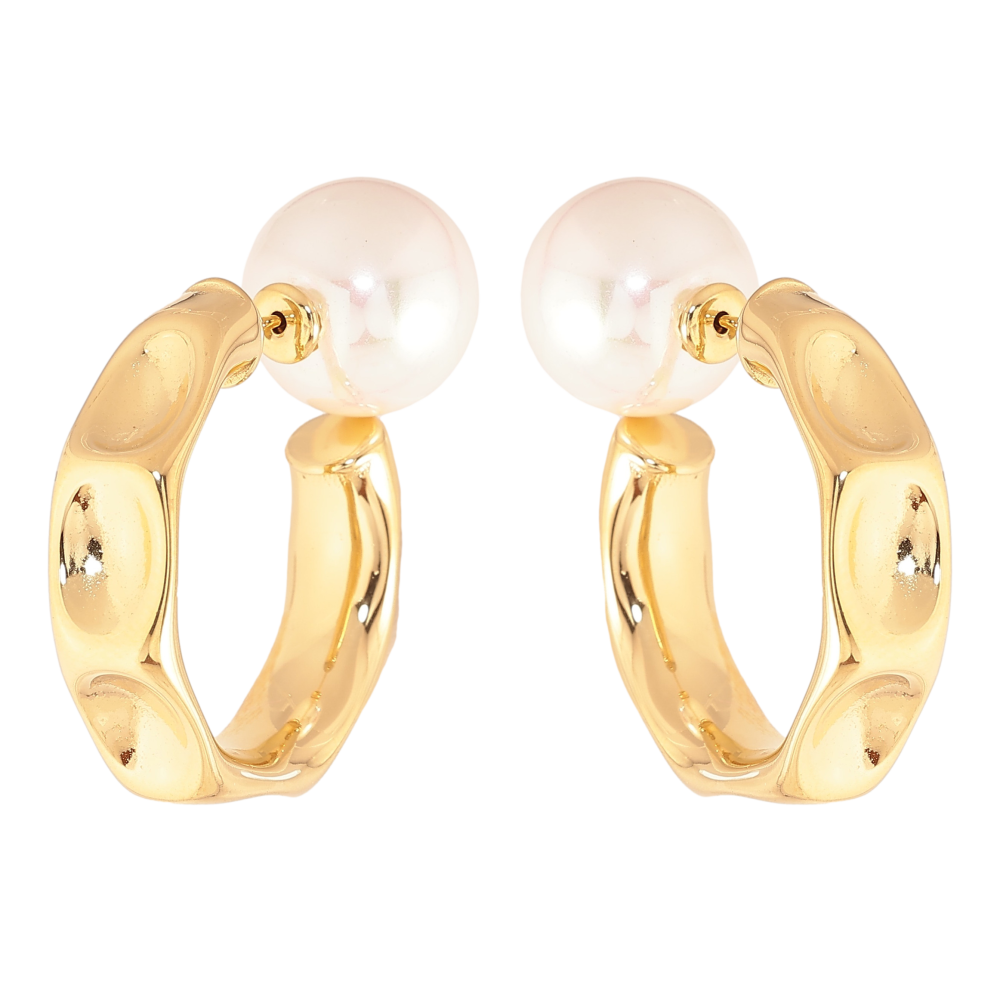 Сережки Нержавіюча сталь пусети-джекети "Дуги з перлинами" ø 14мм