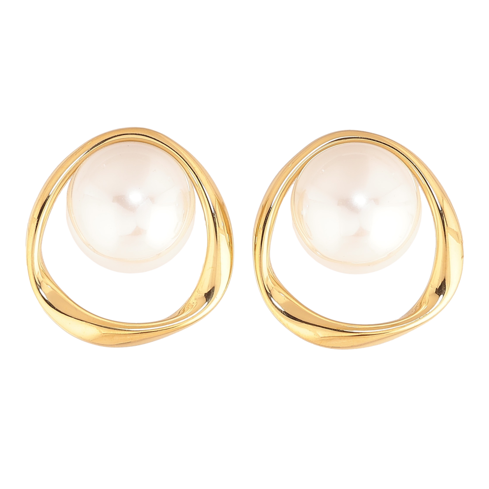Сережки Нержавіюча сталь пусети "Кільця з перлинами"
