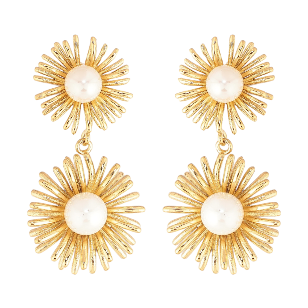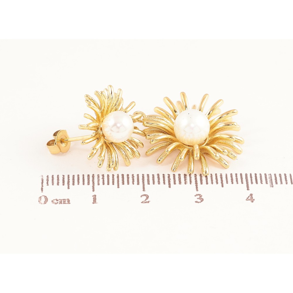 Сережки Нержавіюча сталь пусети "Квіткові підвіски з перлинами"