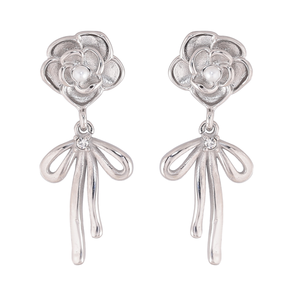Сережки Нержавіюча сталь пусети "Квіточки з бантами"