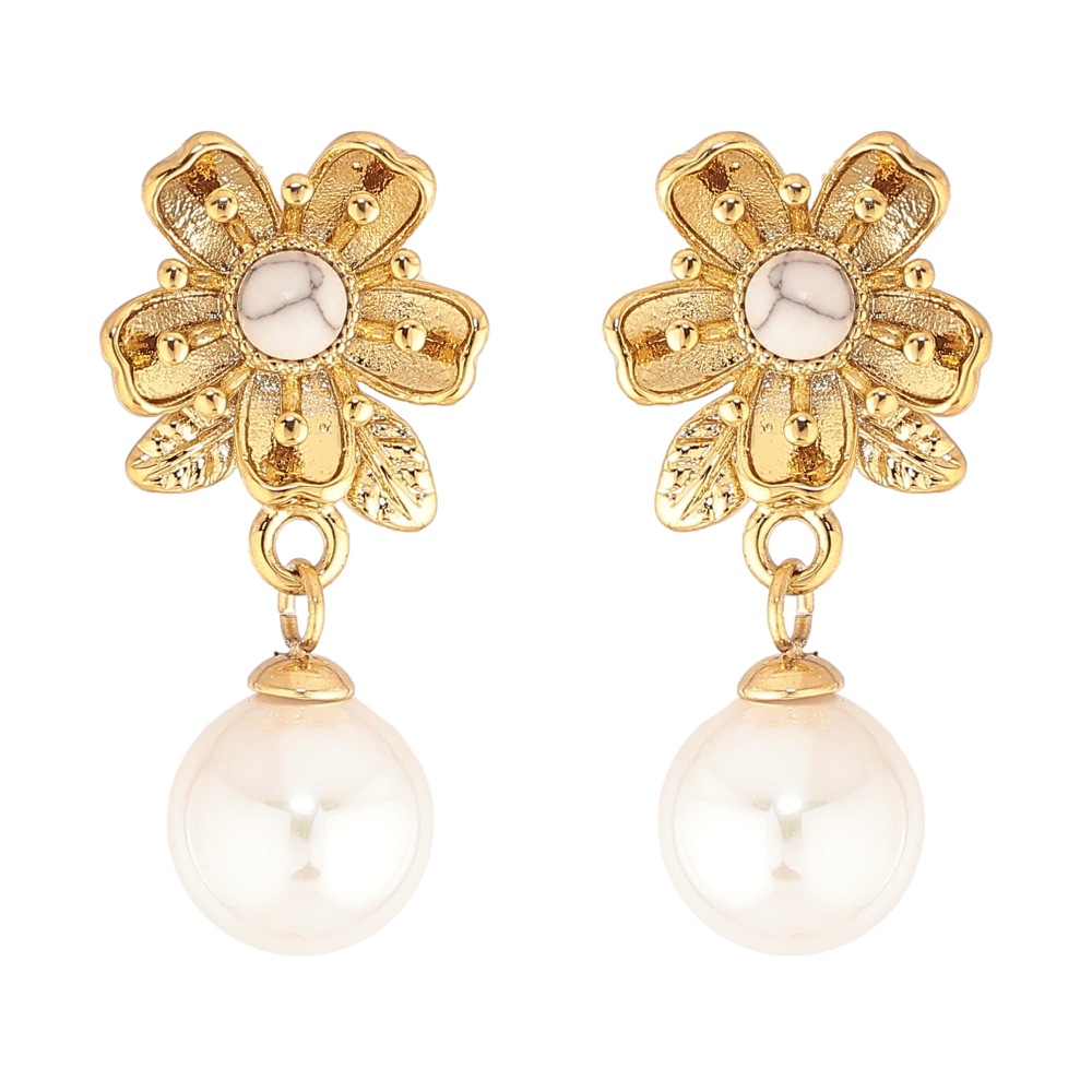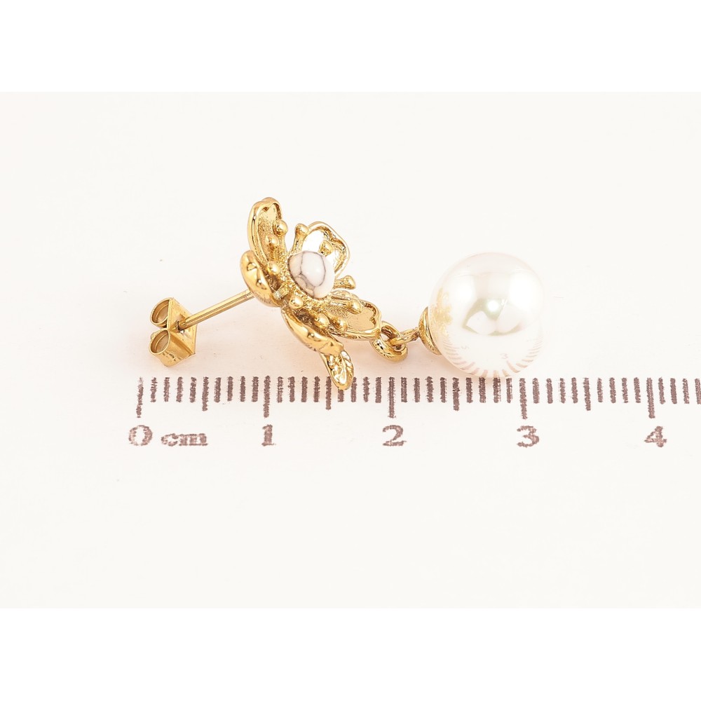 Сережки Нержавіюча сталь пусети "Квіточки з кристалами та перлинами"