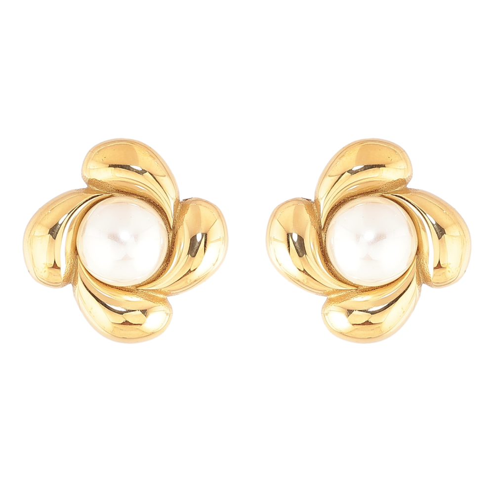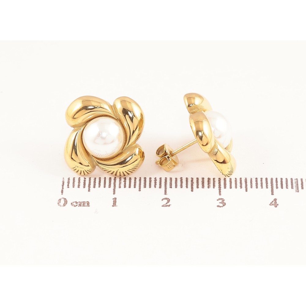 Сережки Нержавіюча сталь пусети "Квіточки з перлинами"