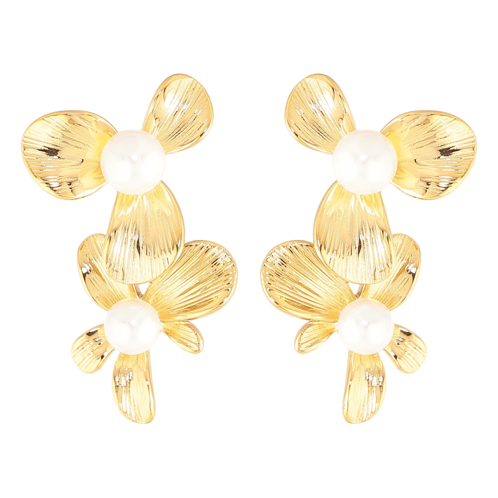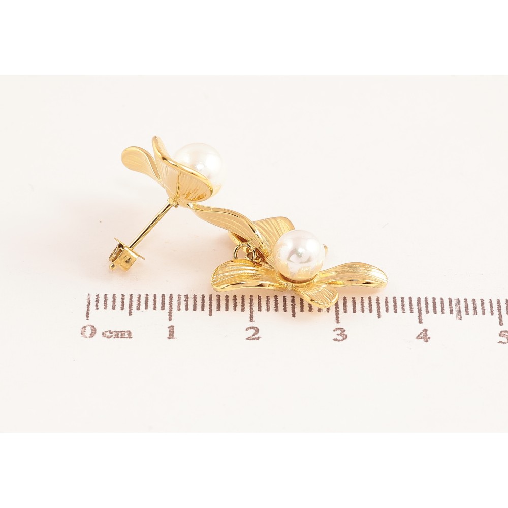 Сережки Нержавіюча сталь пусети "Квіточки з перлинами"