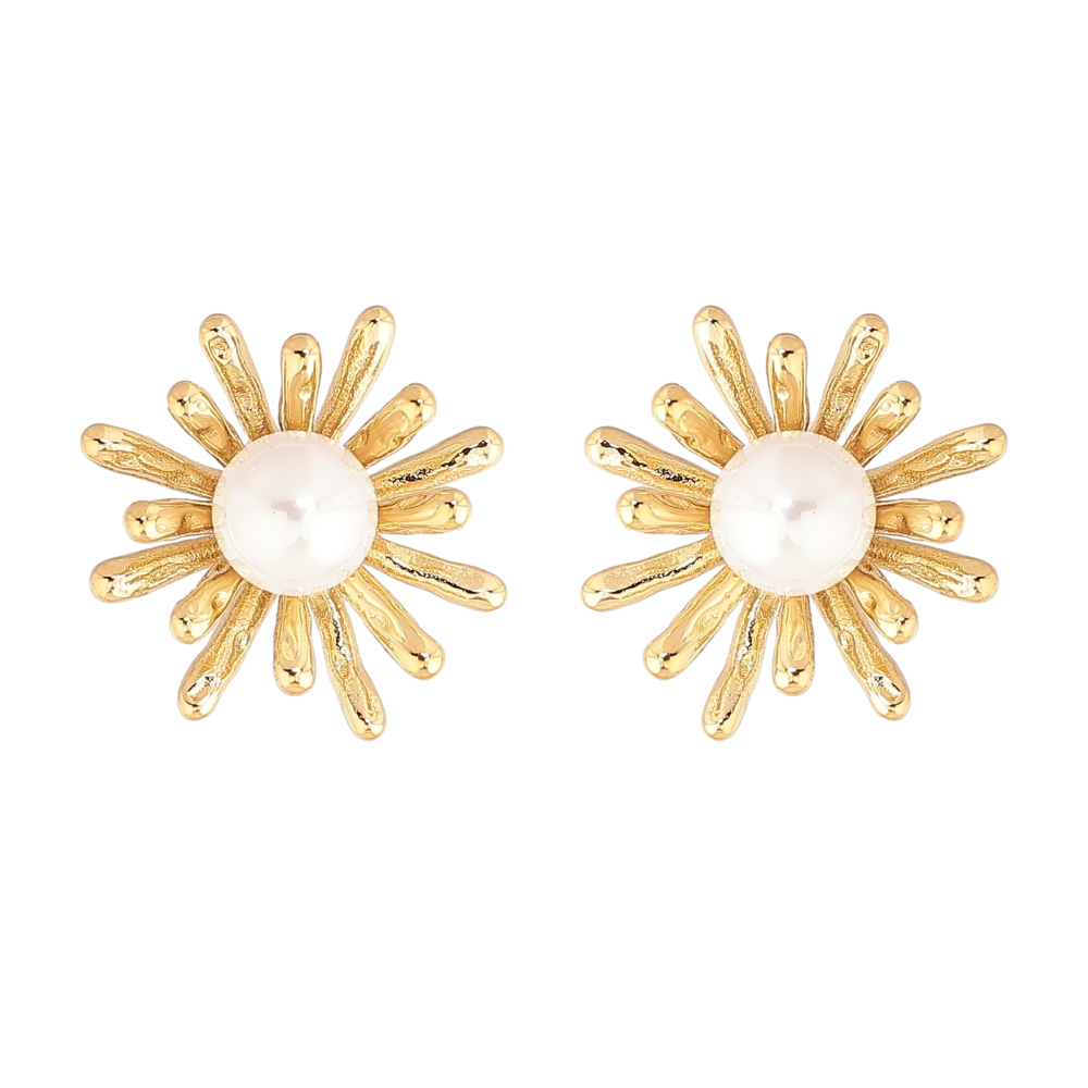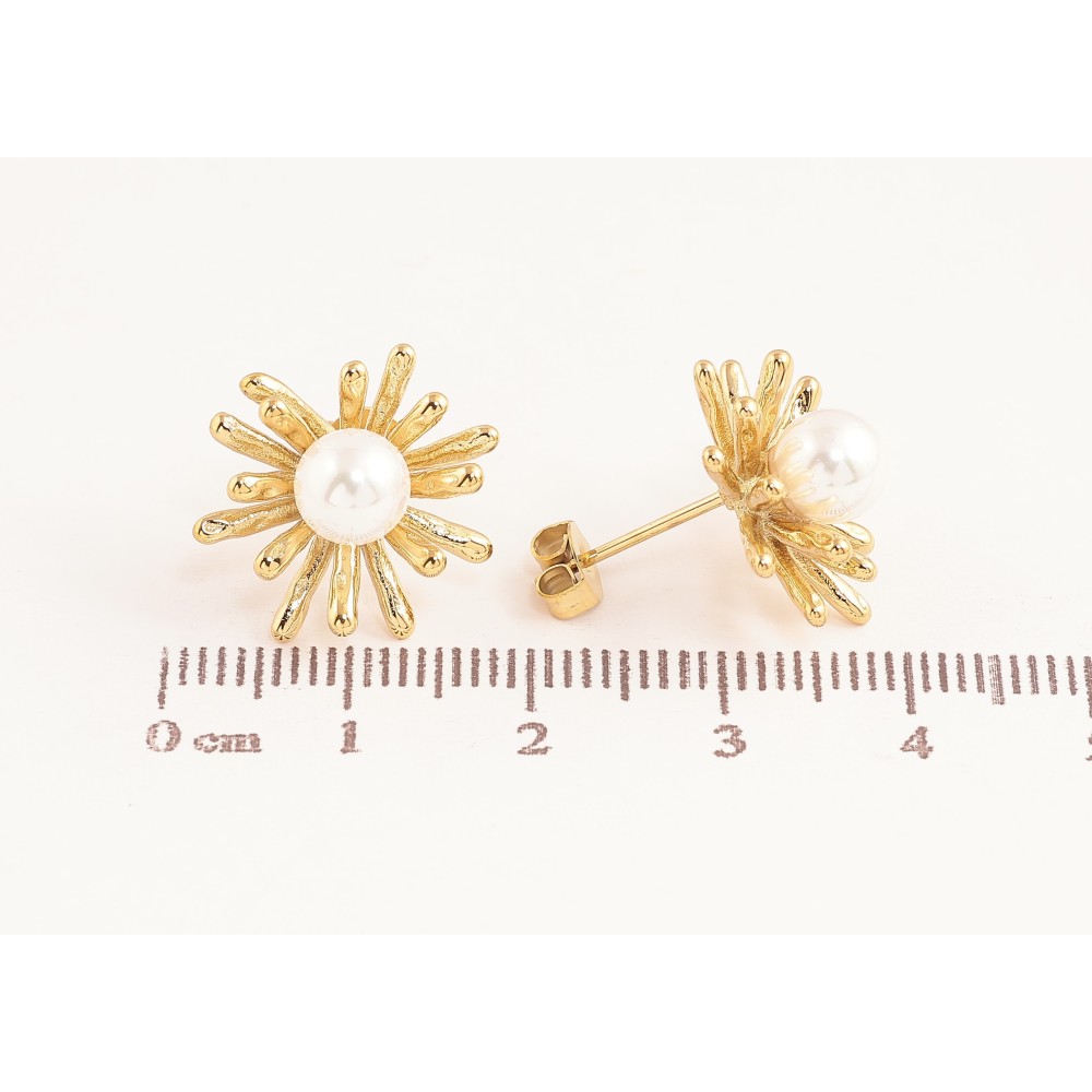 Сережки Нержавіюча сталь пусети "Квіточки з перлинами"