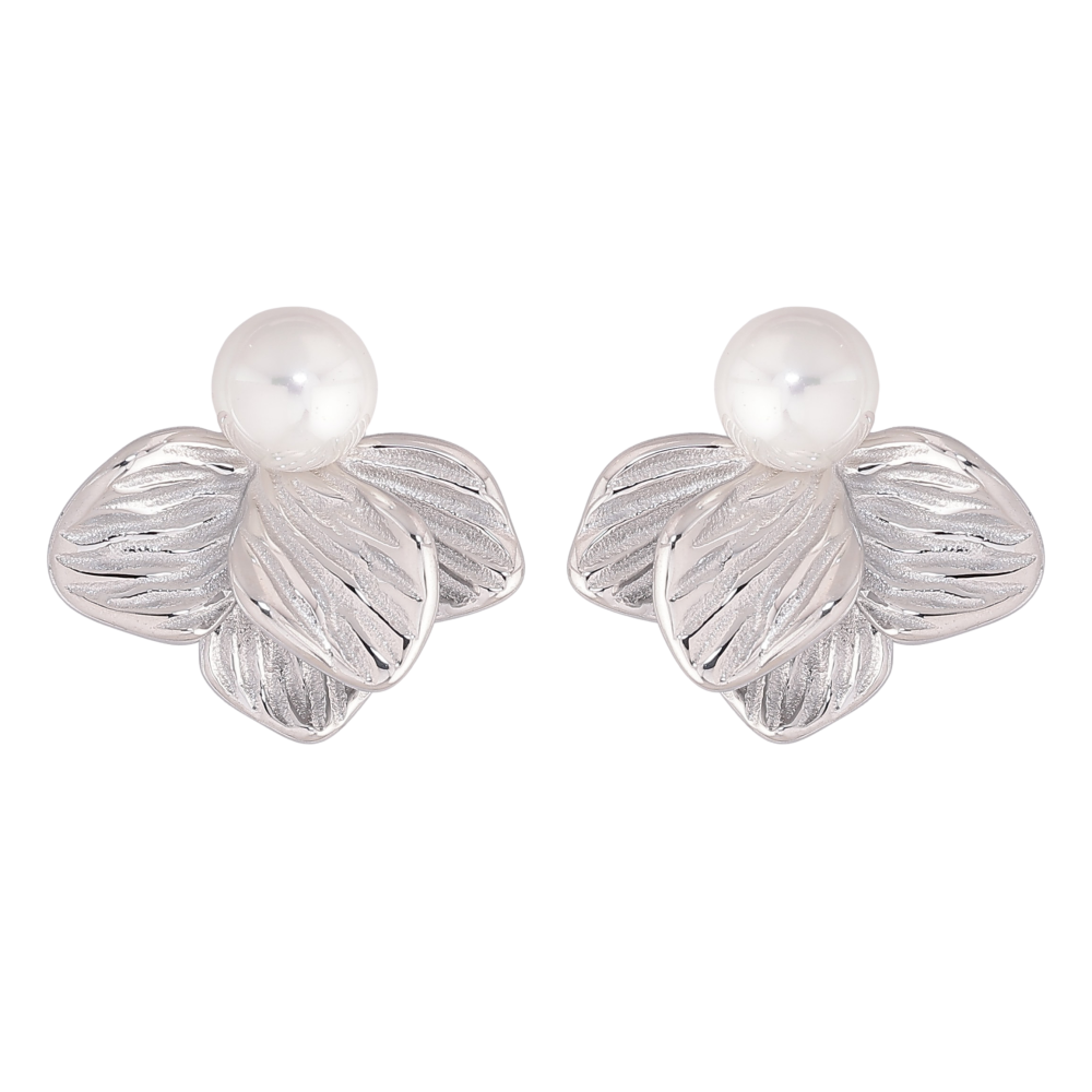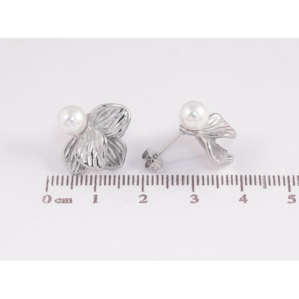 Сережки Нержавіюча сталь пусети "Квіточки з перлинами"