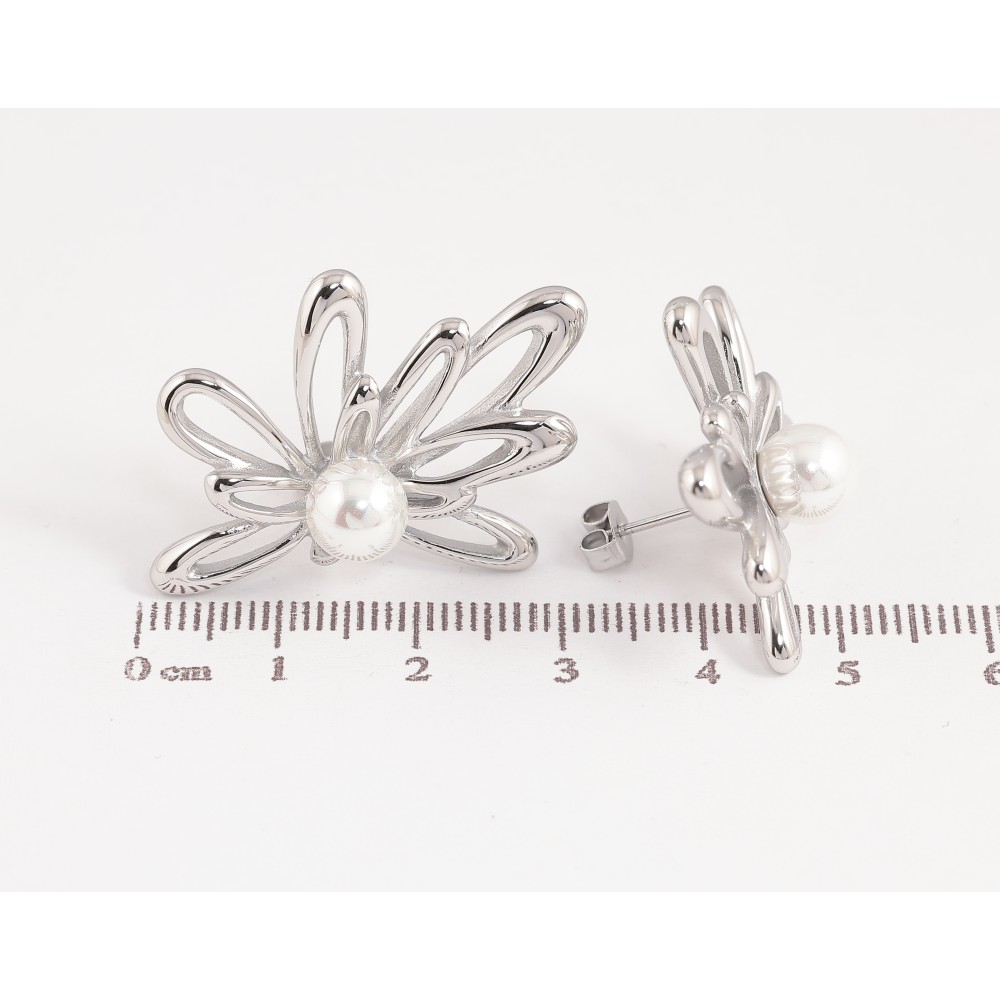Сережки Нержавіюча сталь пусети "Квіточки з перлинами" фото №2
