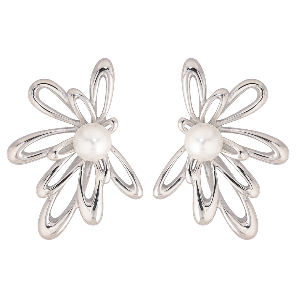 Сережки Нержавіюча сталь пусети "Квіточки з перлинами" фото №1