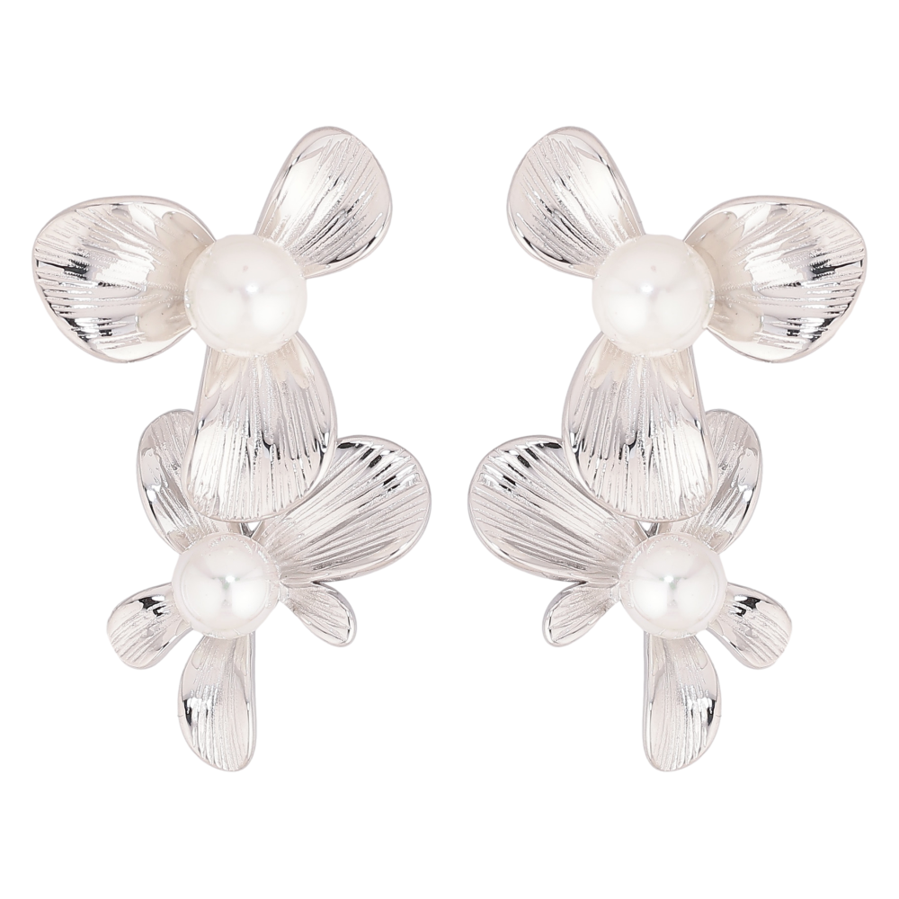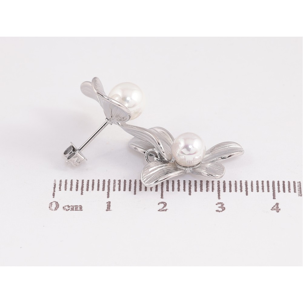 Сережки Нержавіюча сталь пусети "Квіточки з перлинами"