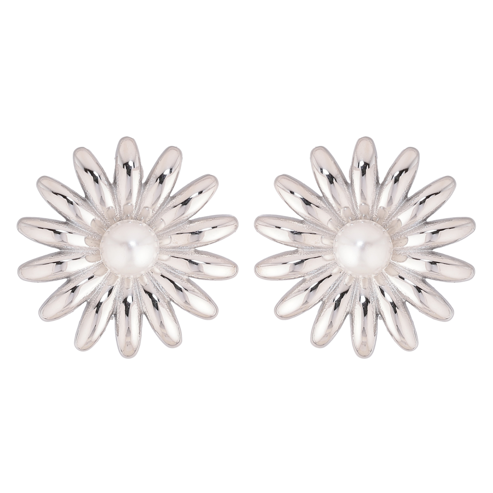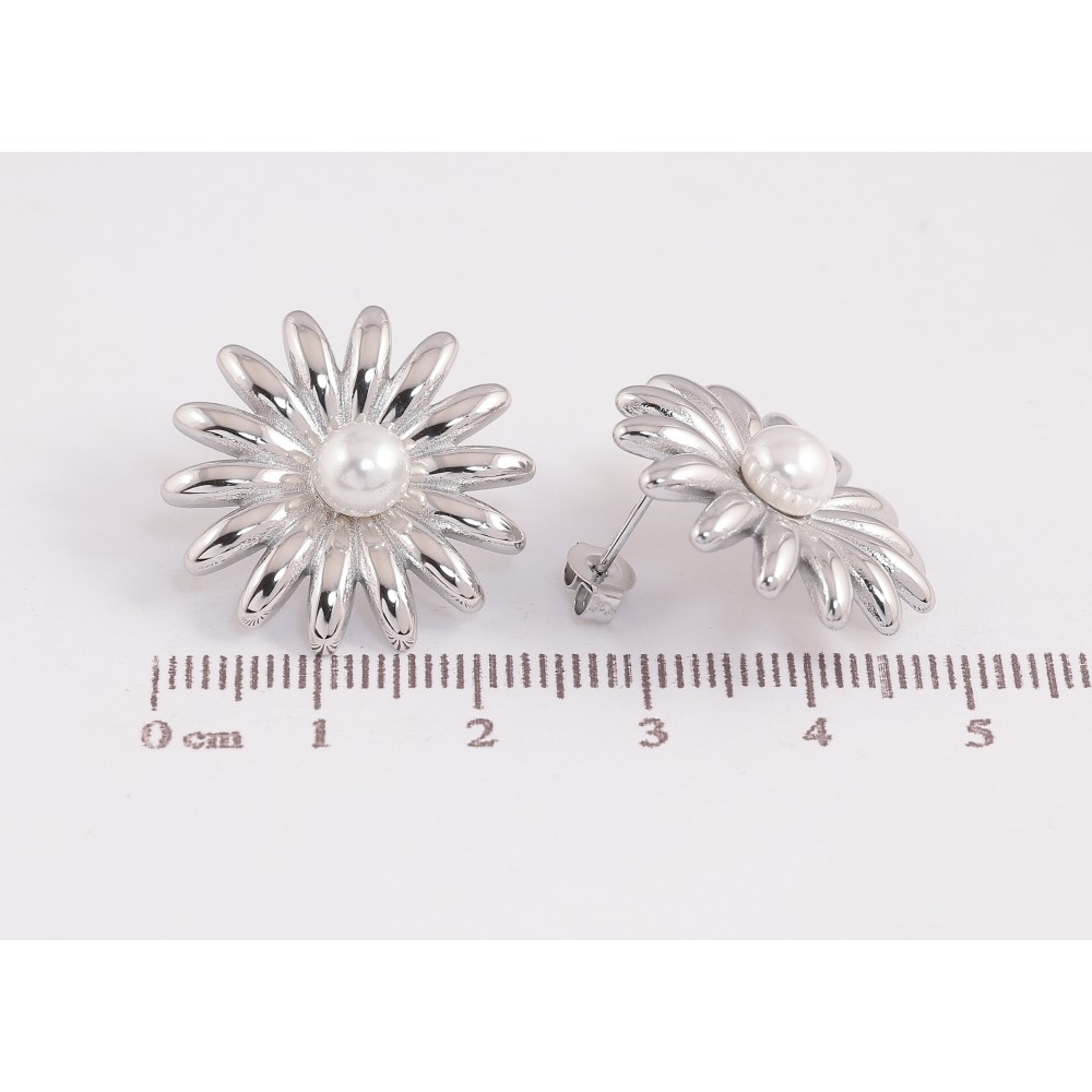 Сережки Нержавіюча сталь пусети "Квіточки з перлинами"