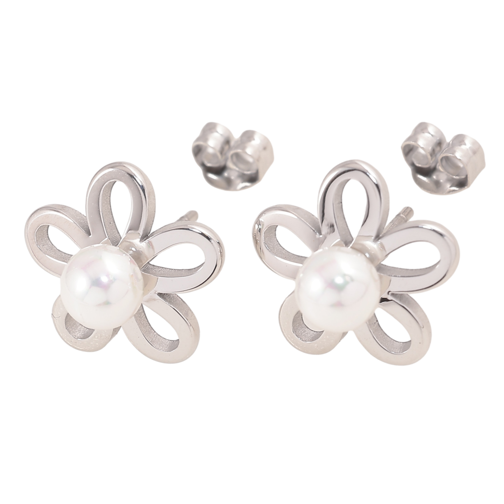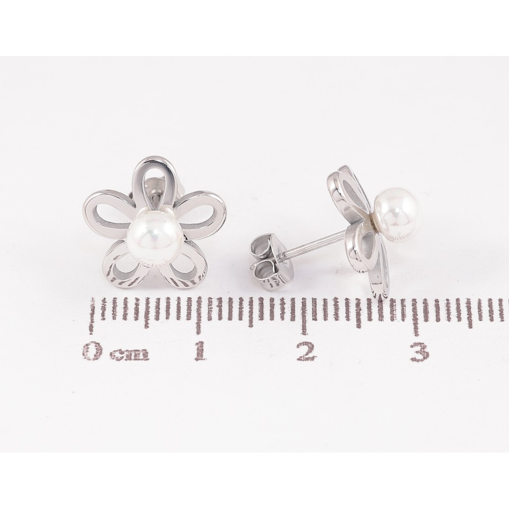 Сережки Нержавіюча сталь пусети "Квіточки з перлинами"
