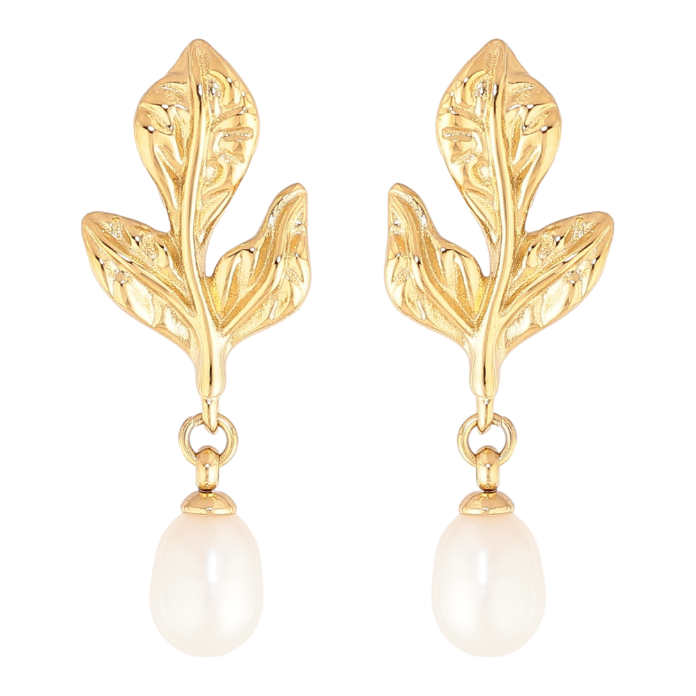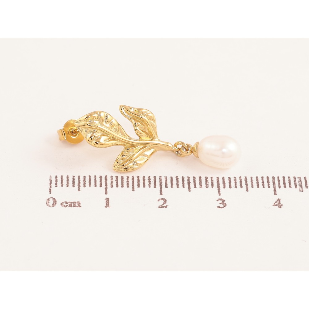 Сережки Нержавіюча сталь пусети "Листики з перлинними підвісками"
