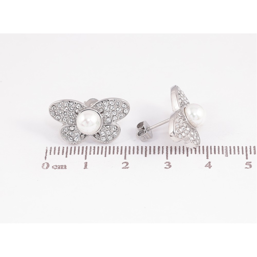 Сережки Нержавіюча сталь пусети "Метелики з перлинами"
