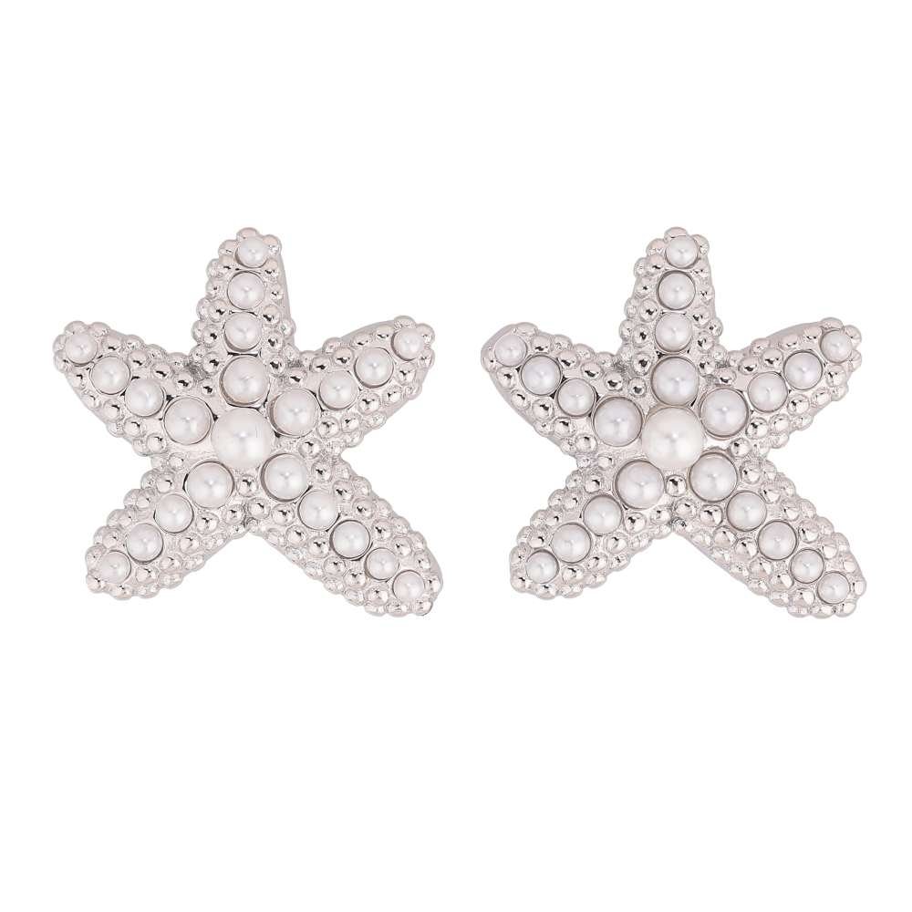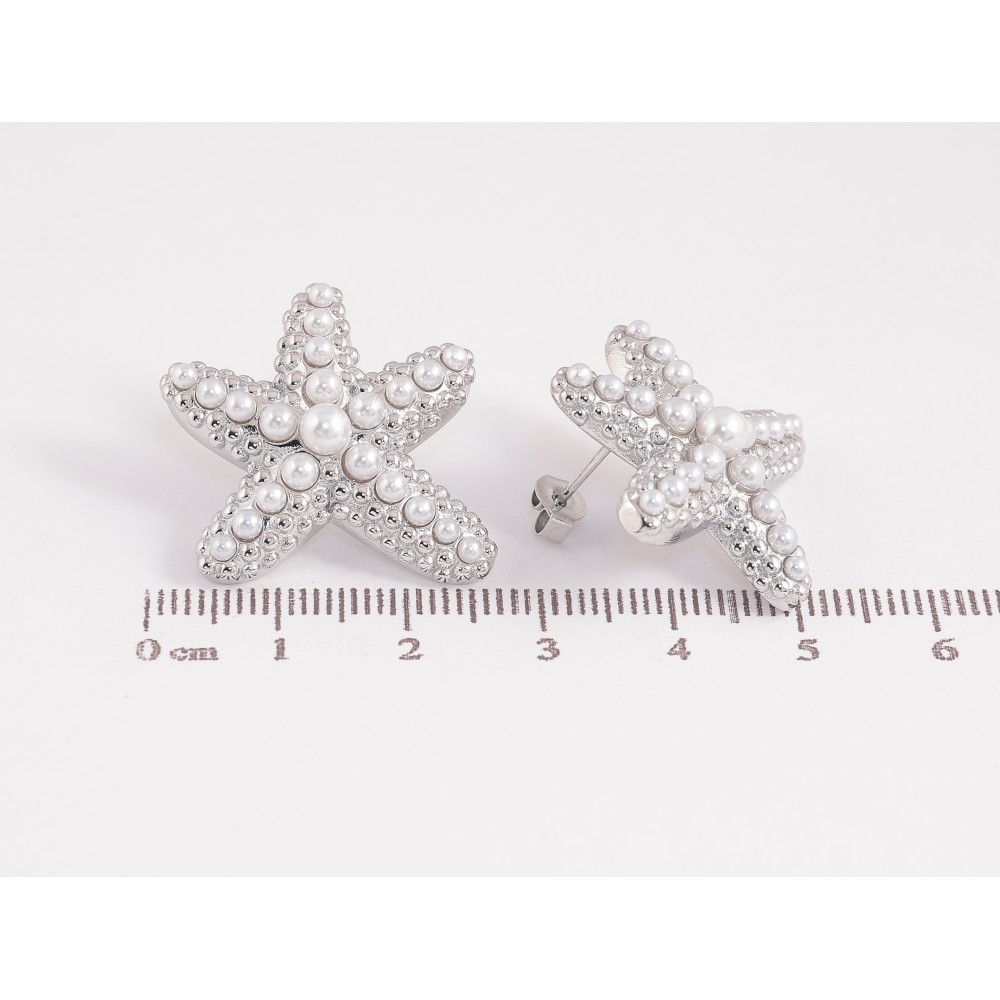 Сережки Нержавіюча сталь пусети "Морські зірки із перлинами"