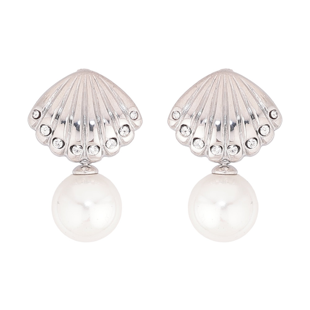Сережки Нержавіюча сталь пусети "Мушля з перлинами"