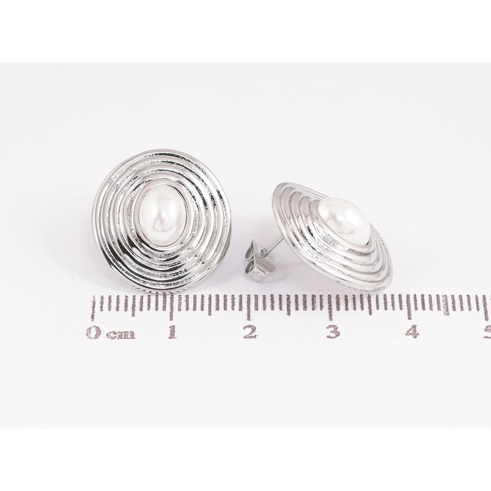 Сережки Нержавіюча сталь пусети "Овали з перлинними вставками"