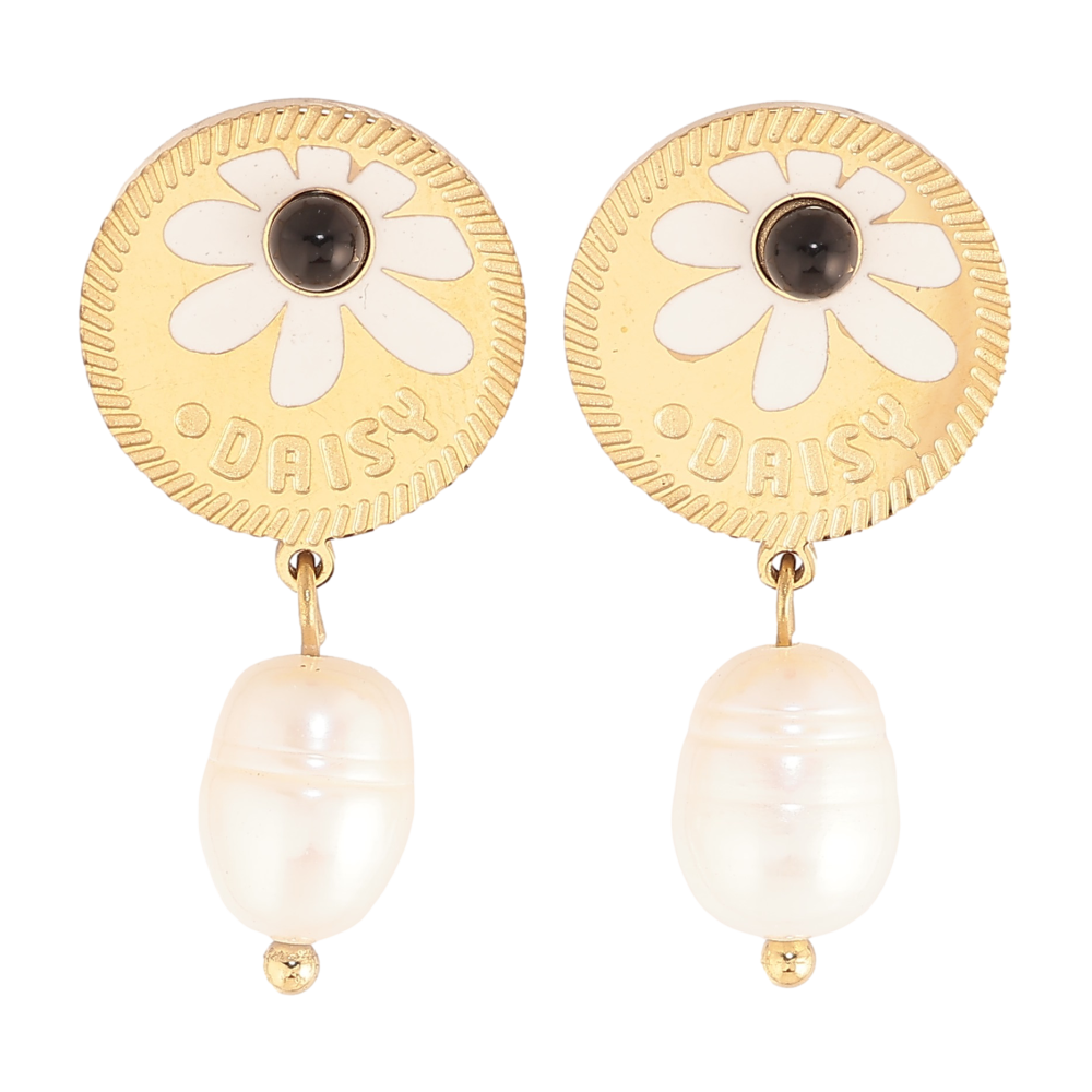 Сережки Нержавіюча сталь пусети "Перлинні підвіски з квітковим візерунком"