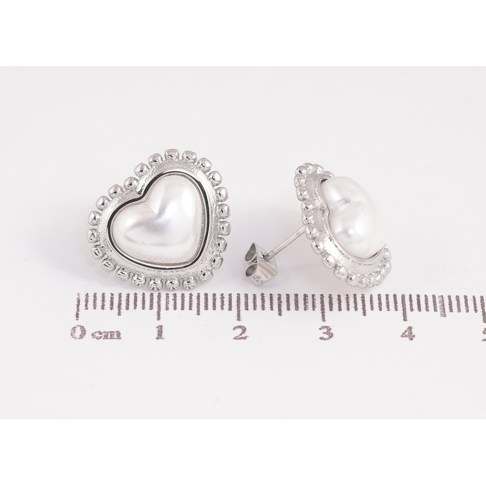 Сережки Нержавіюча сталь пусети "Перлинні серця"