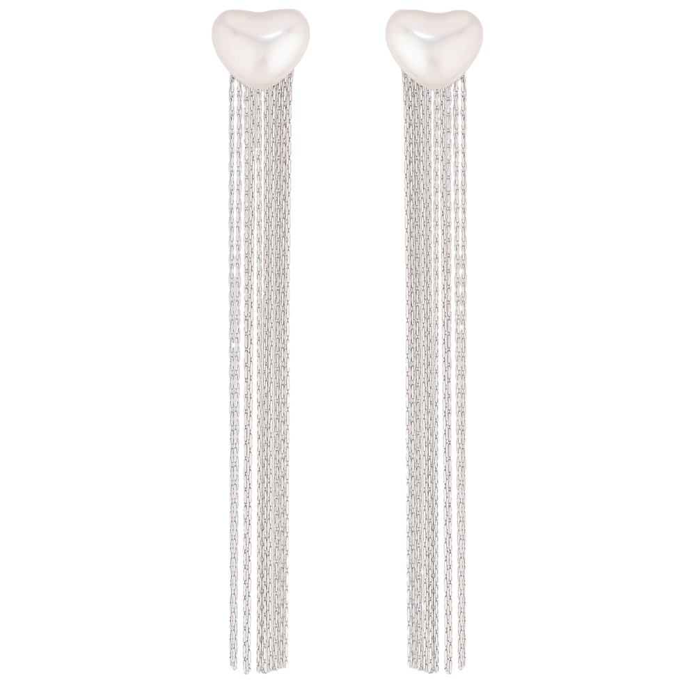 Сережки Нержавіюча сталь пусети "Перлинні серця з підвісками"