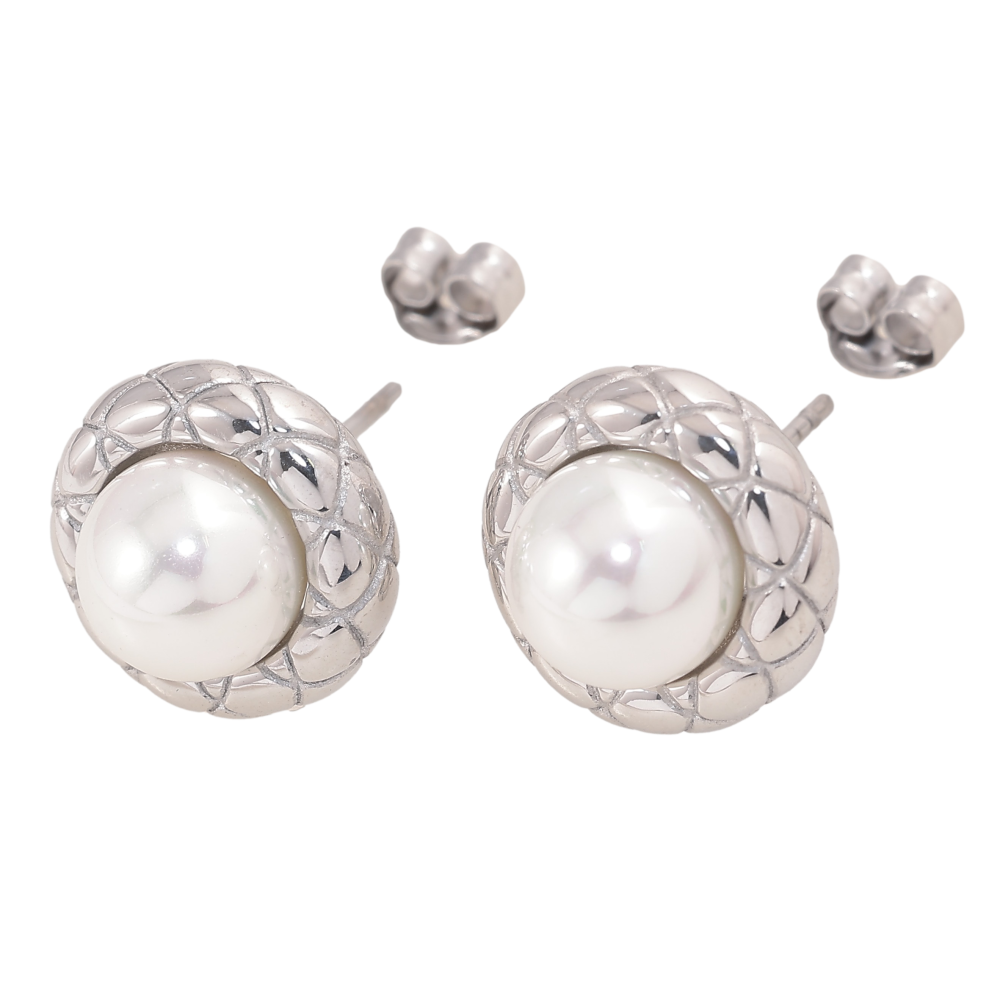 Сережки Нержавіюча сталь пусети "Перлини у декоративній оправі"