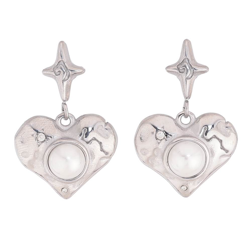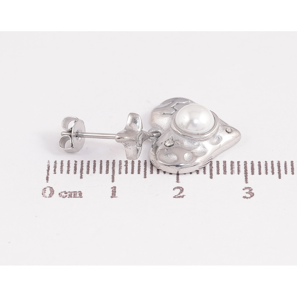 Сережки Нержавіюча сталь пусети "Підвіски серця з перлинами"