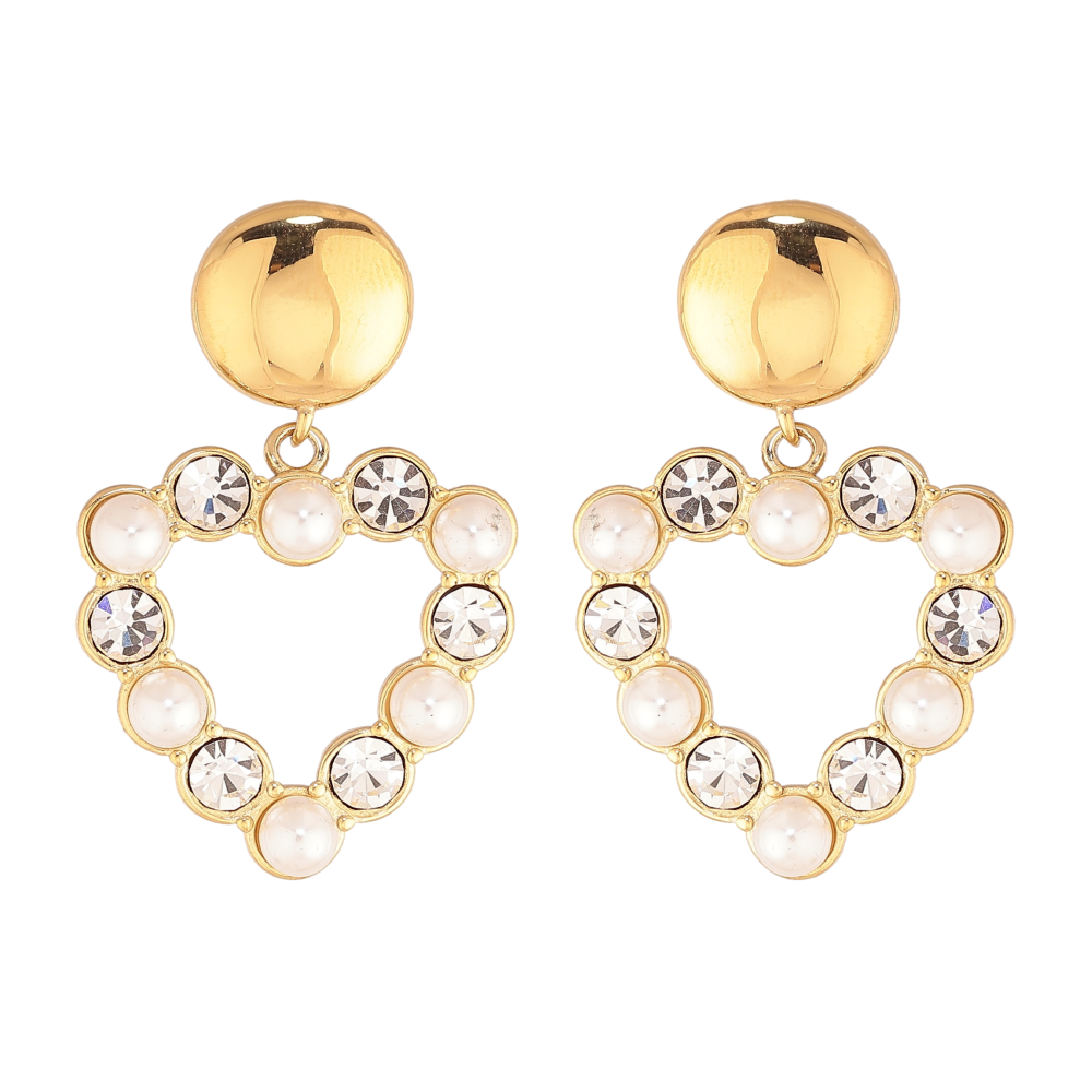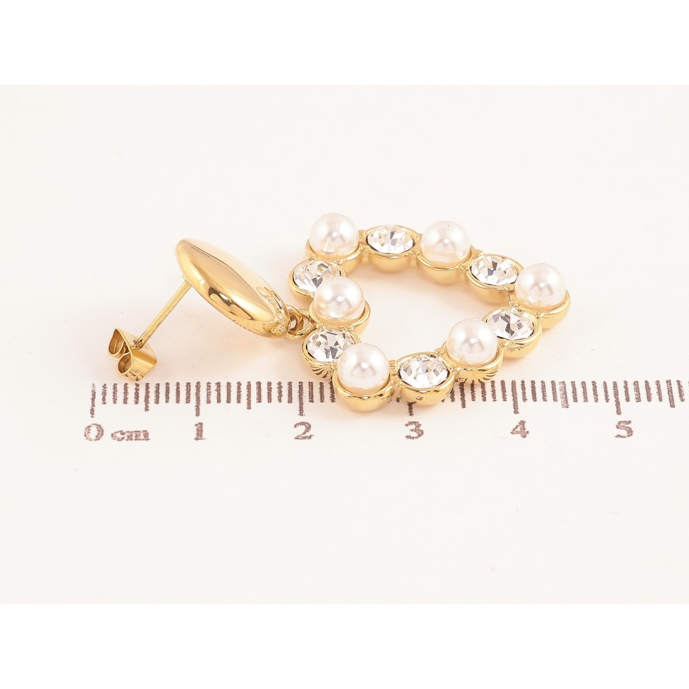 Сережки Нержавіюча сталь пусети "Підвіски серця з перлинами та кристалами"