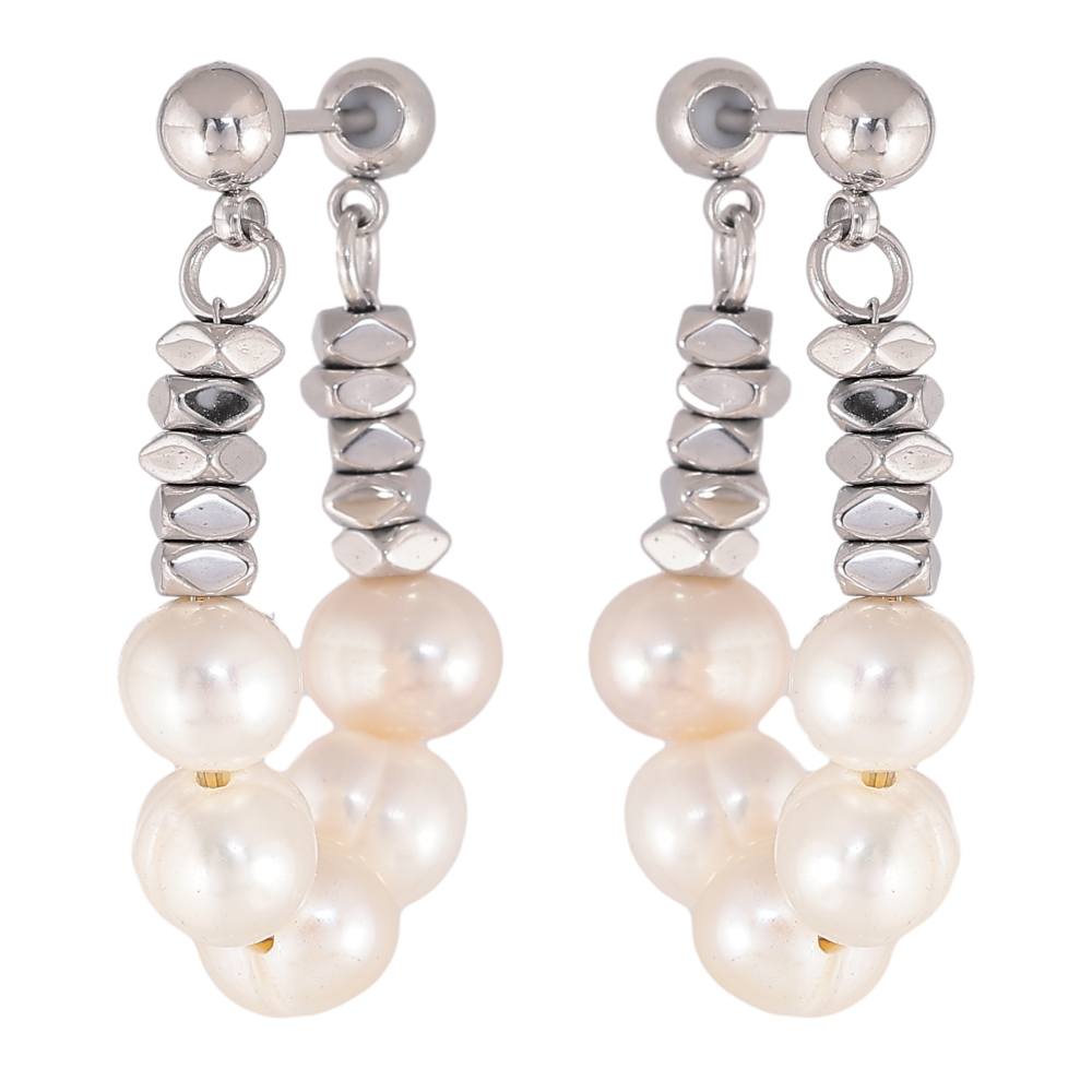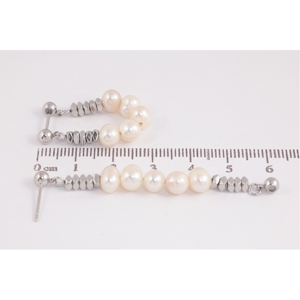 Сережки Нержавіюча сталь пусети "Підвіски з бежевими перлинами"