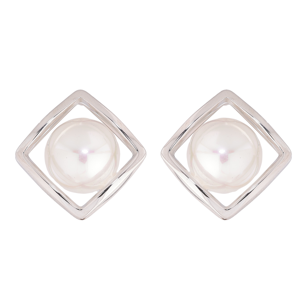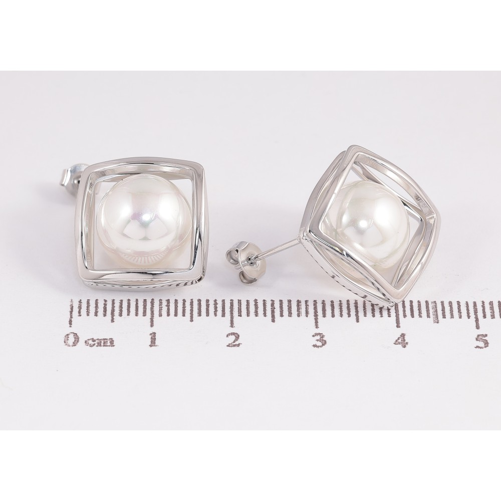 Сережки Нержавіюча сталь пусети "Ромби з перлинами"