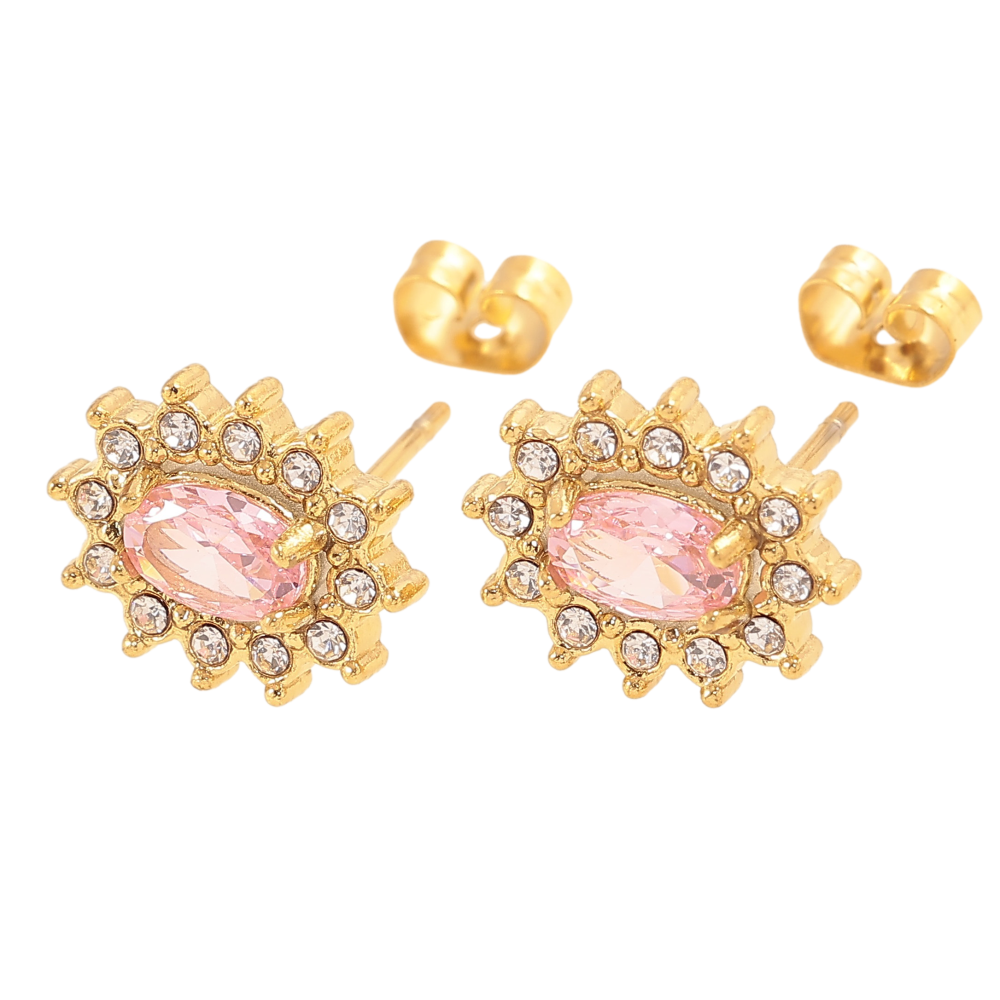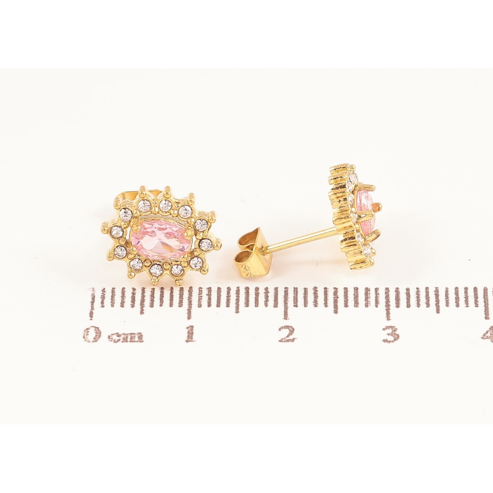 Сережки Нержавіюча сталь пусети "Рожеві кристальні квіточки"