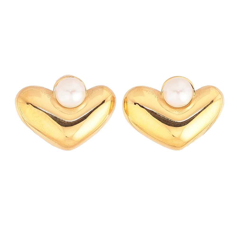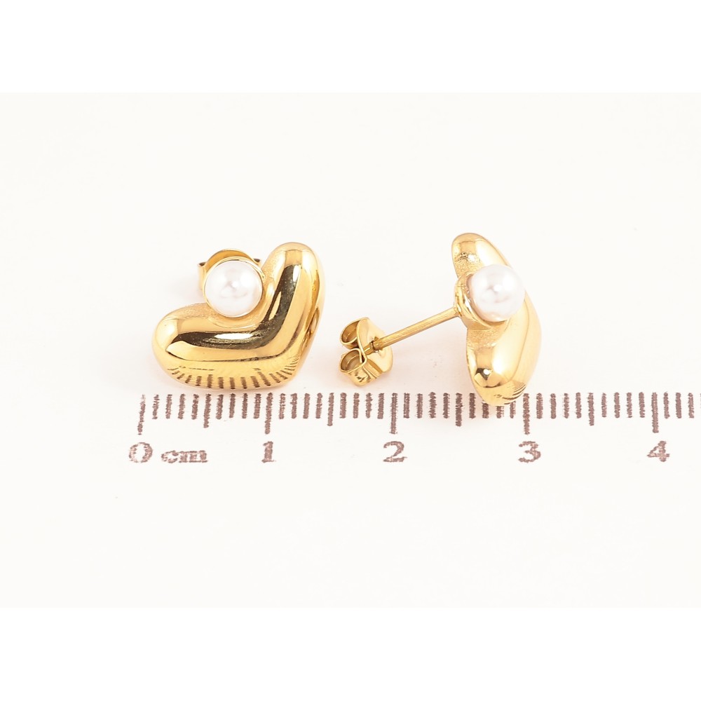 Сережки Нержавіюча сталь пусети "Сердечка з перлинами"
