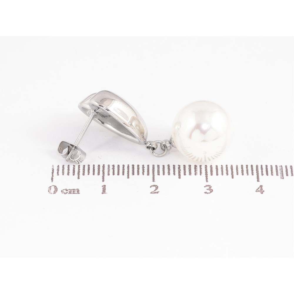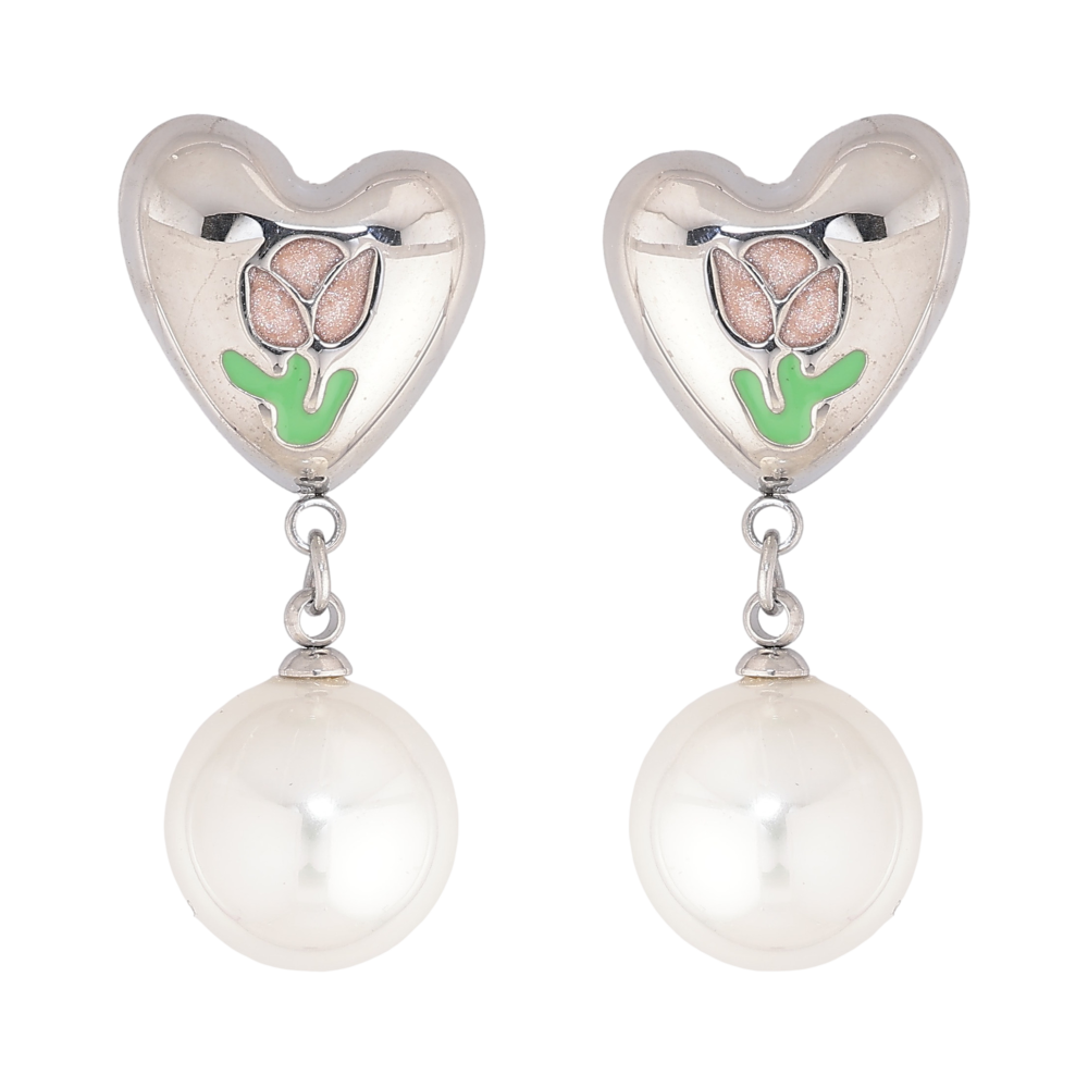 Сережки Нержавіюча сталь пусети "Сердечки з квітковим візерунком та перлинними підвісками"