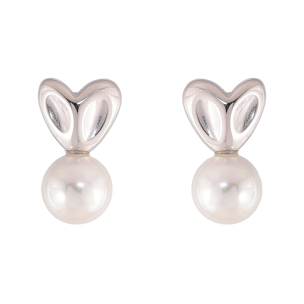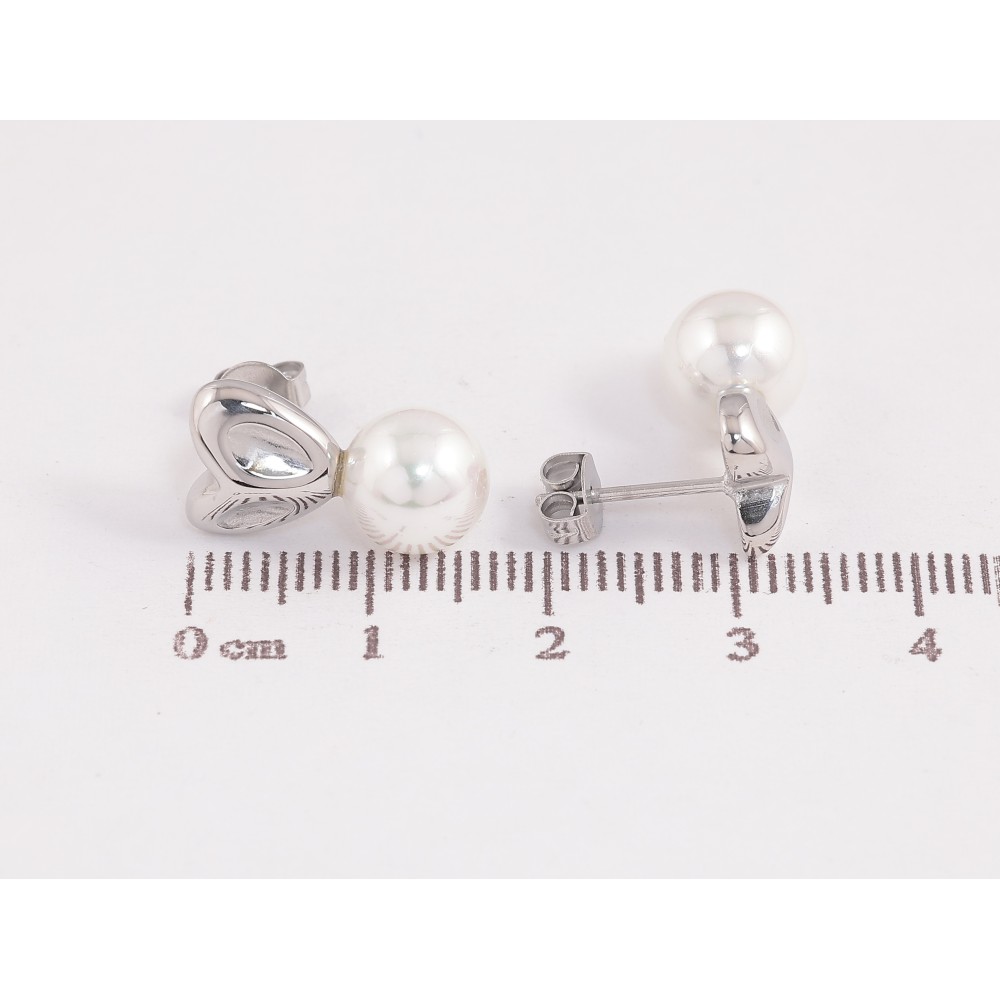 Сережки Нержавіюча сталь пусети "Сердечки з перлинами"