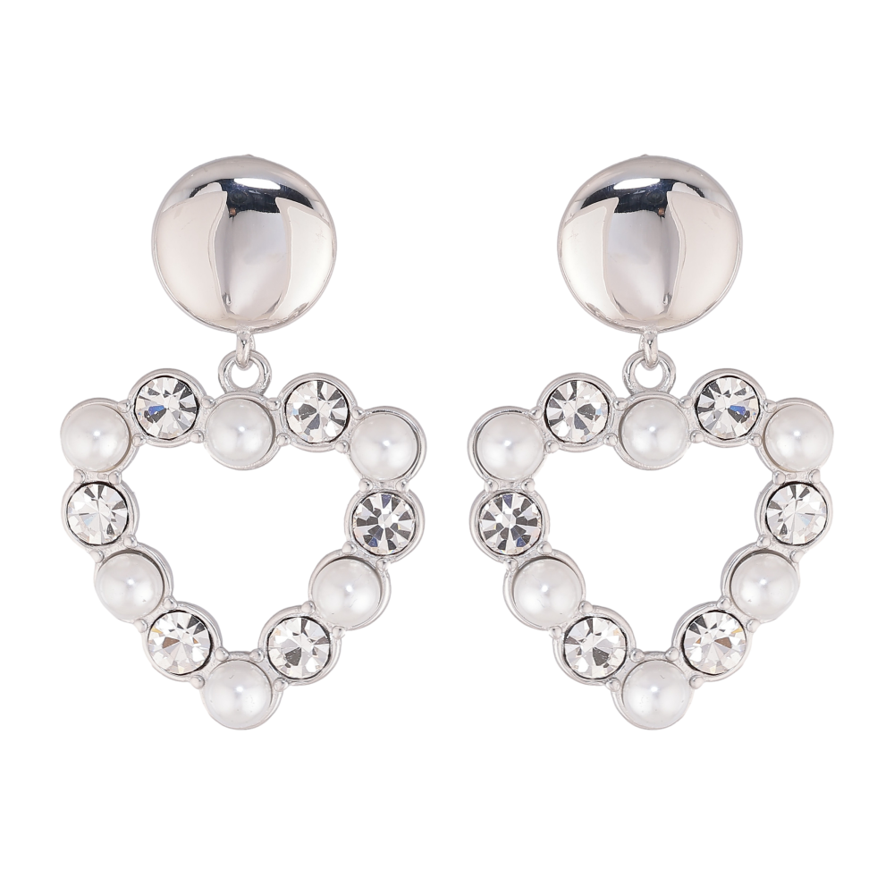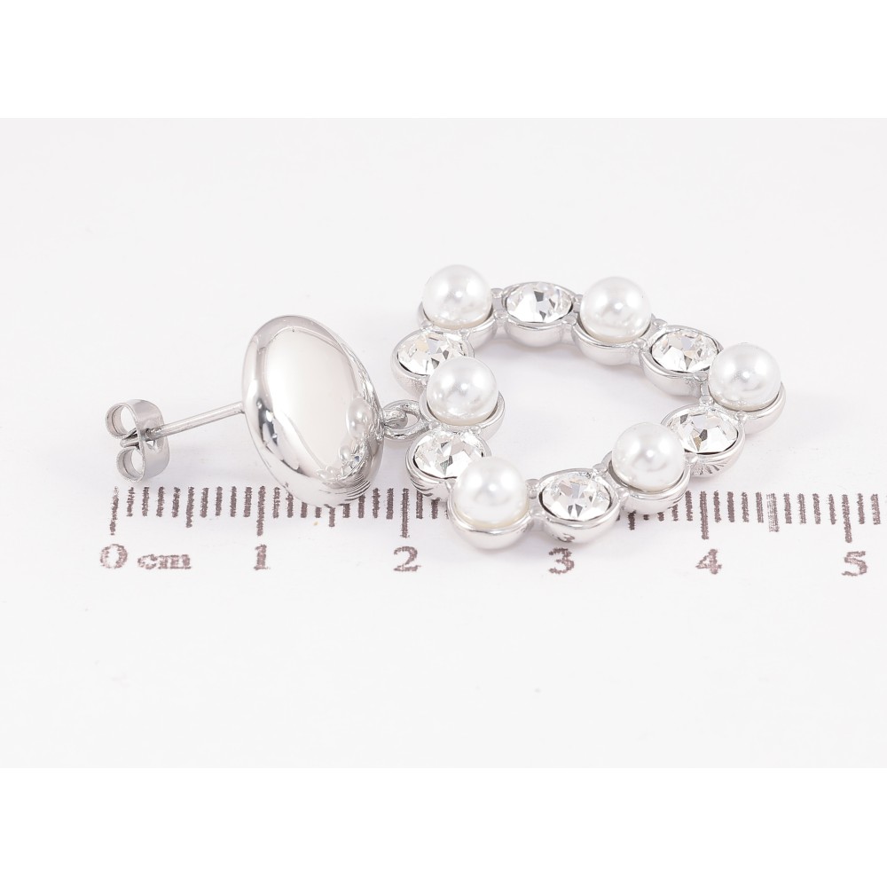 Сережки Нержавіюча сталь пусети "Сердечки з перлинами та кристалами"