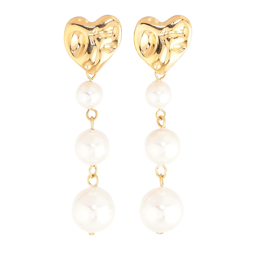 Сережки Нержавіюча сталь пусети "Сердечки з перлинними підвісками"