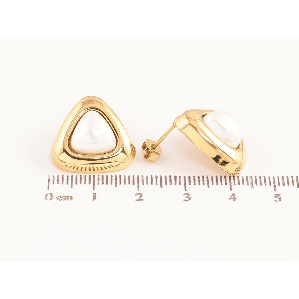 Сережки Нержавіюча сталь пусети "Трикутники з перлинними вставками"