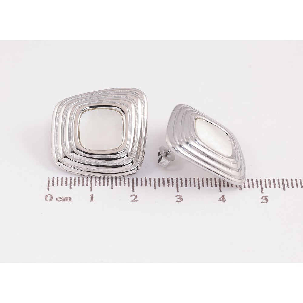 Сережки Нержавіюча сталь пусети "Візерунок з перламутровими вставками"
